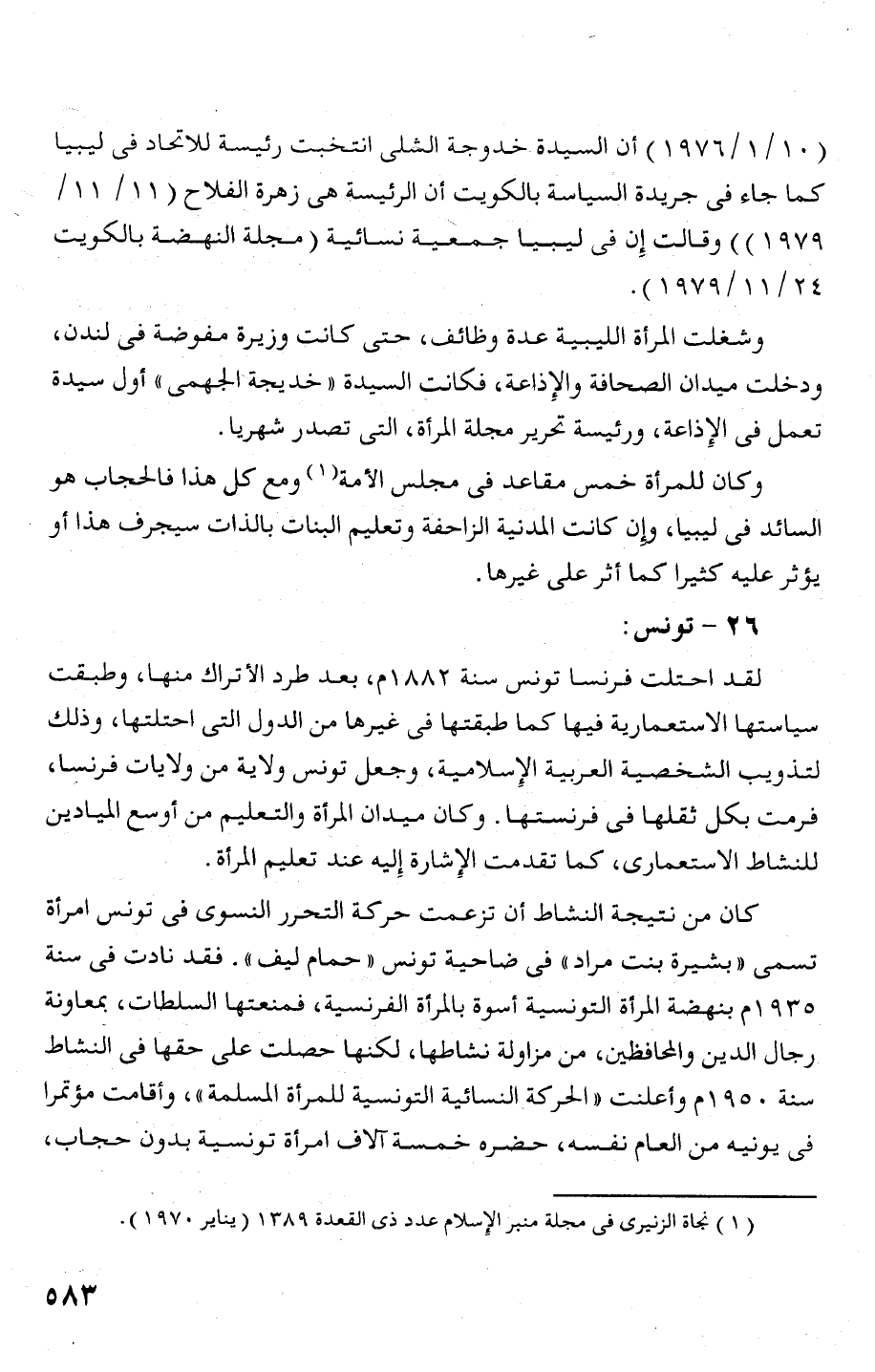 (1) نجاة الزنيرى فى مجلة منبر الإصلام عدد ذى القعدة 1389 (يناير 0 97 1).