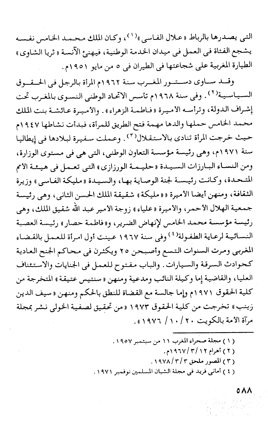 السياسية (2). وفى سنة 968 1 م تأيسر الاتحاد الوطنى النسوى بالمغرب تحت