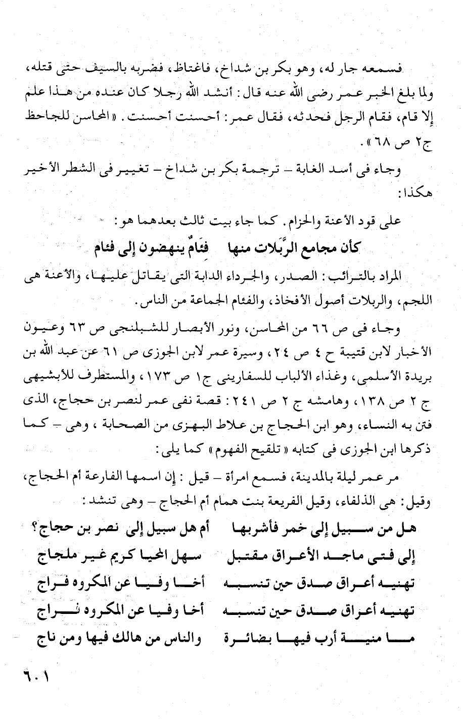 ج 2 - ص 138، وهامشه ج 2 ص 241: قصة نفى عمر لنصر بن حجاج، الذى