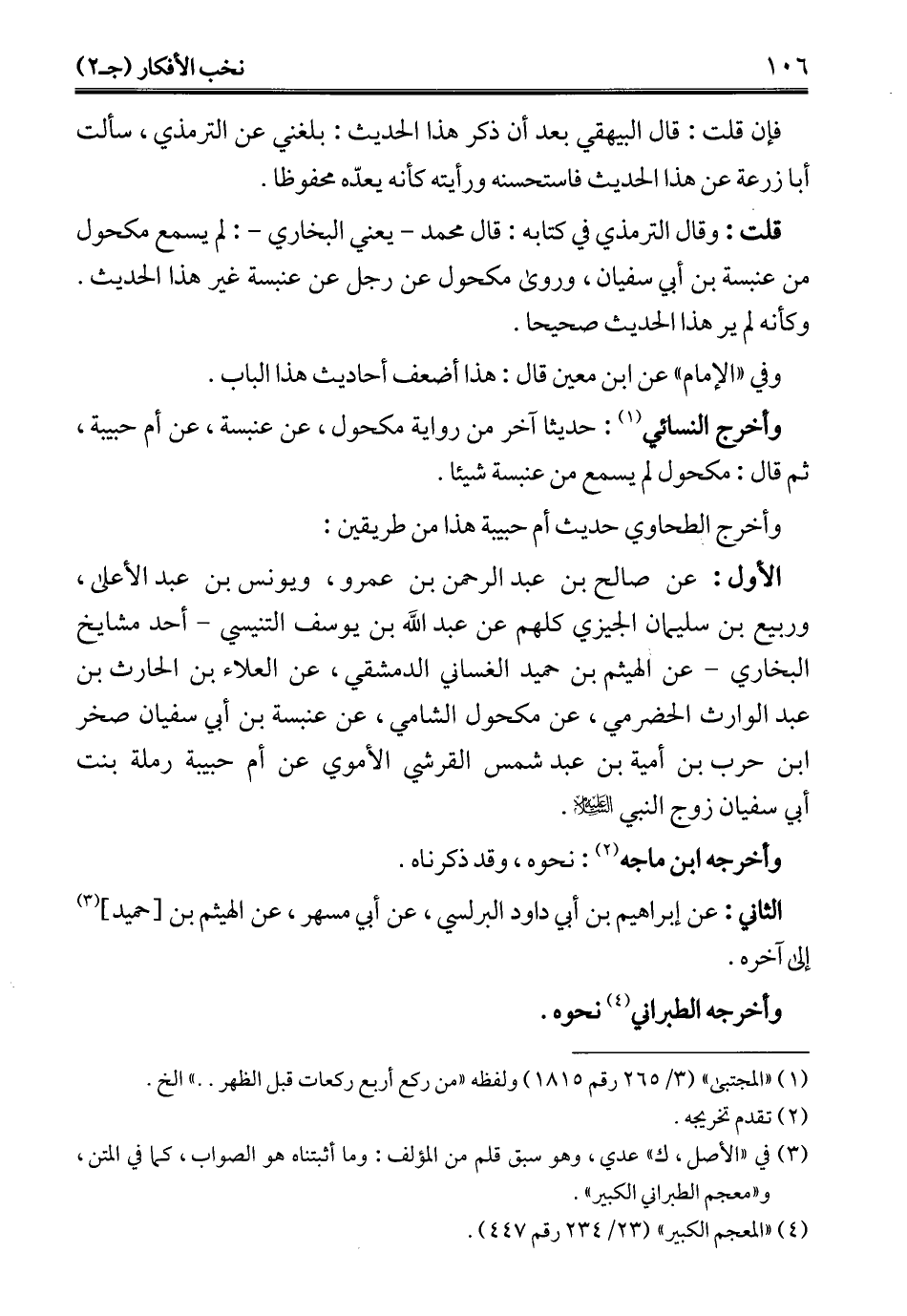 (¬1) "المجتبى" (3/ 265 رقم 1815) ولفظه "من ركع أربع ركعات قبل الظهر .. " الخ.