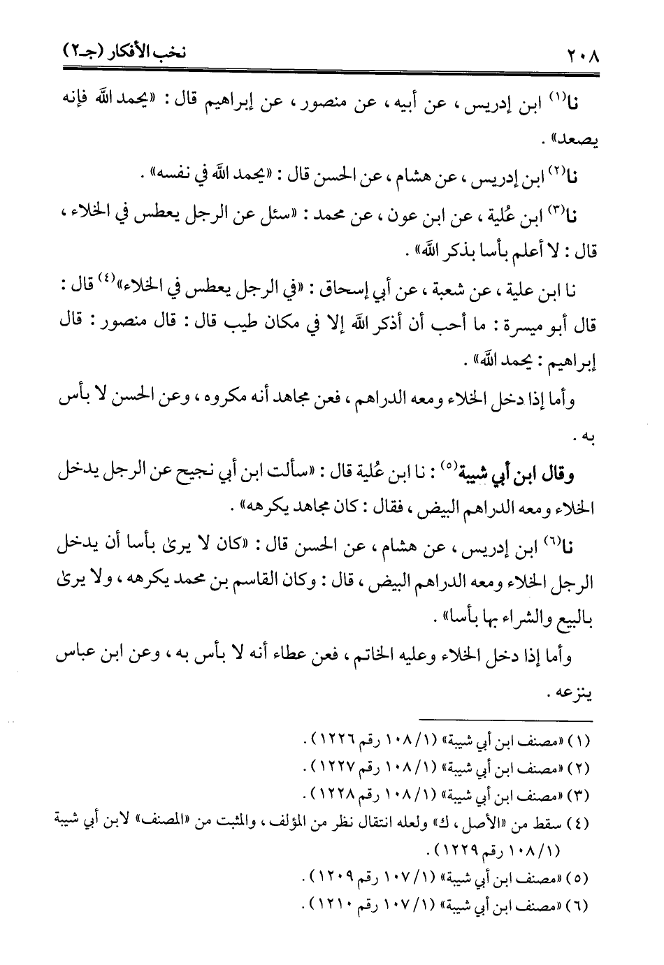 (¬6) "مصنف ابن أبي شيبة" (1/ 107 رقم 1210).