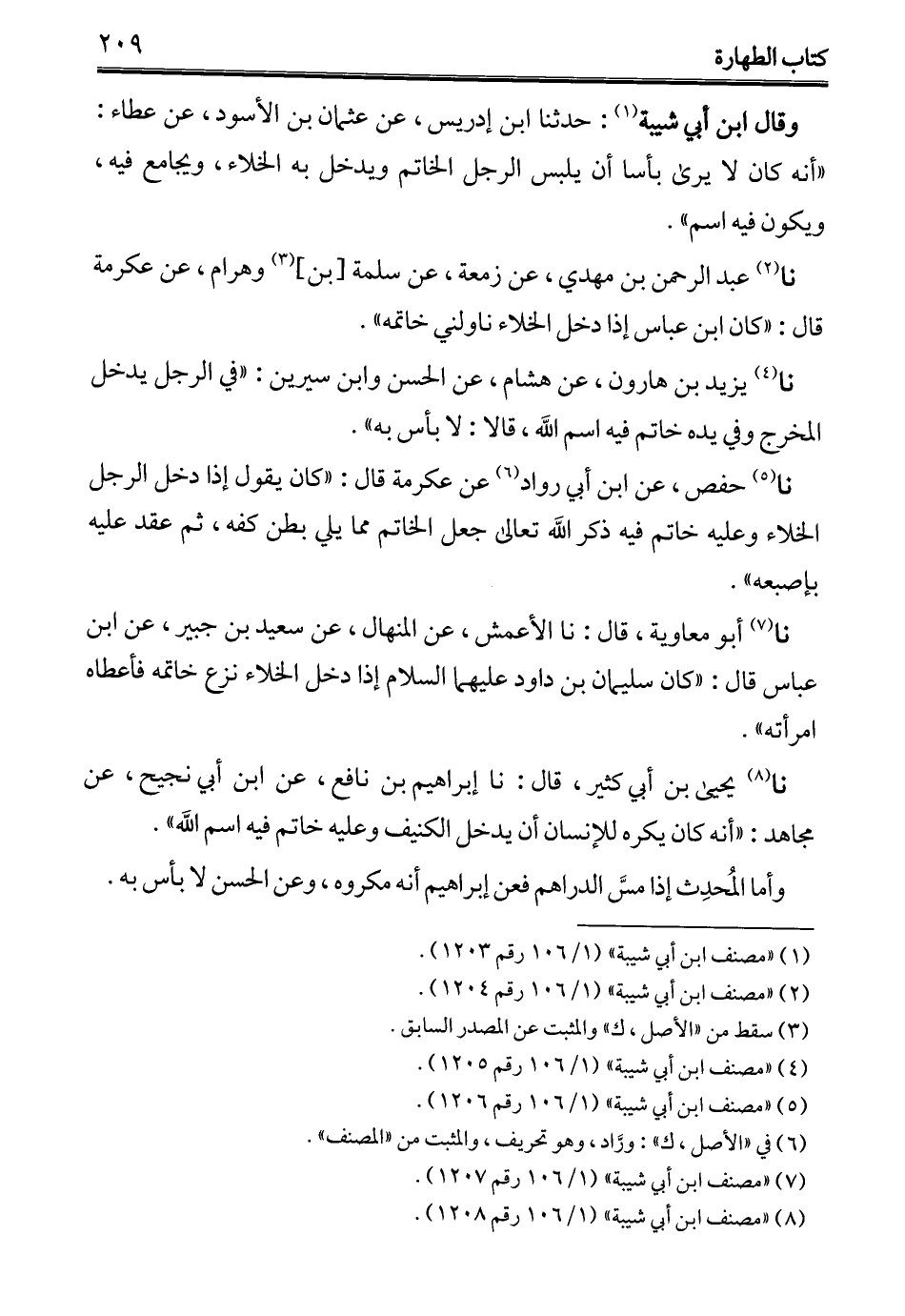 (¬8) "مصنف ابن أبي شيبة" (1/ 106 رقم 1208).