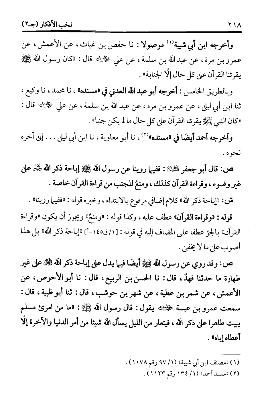 (¬1) "مصنف ابن أبي شيبة" (1/ 97 رقم 1078).