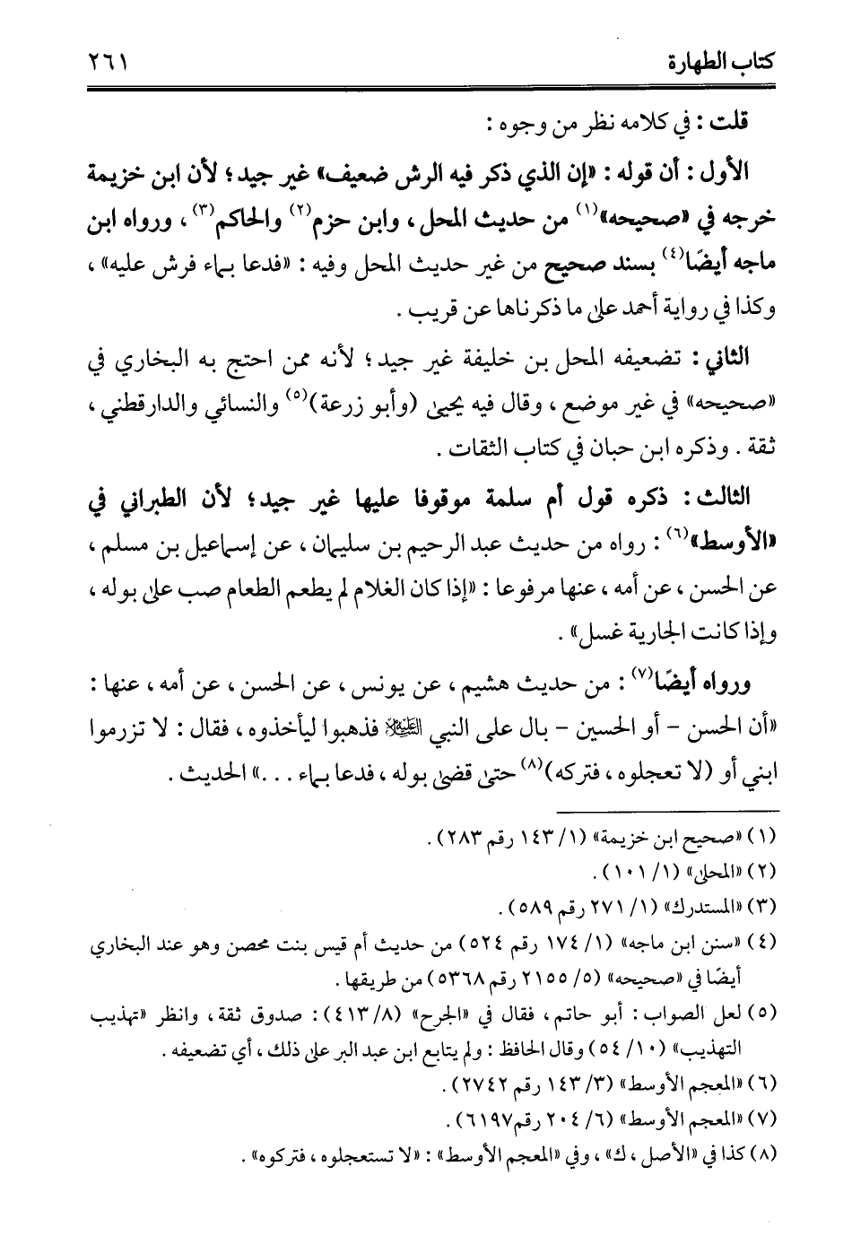 (¬1) "صحيح ابن خزيمة" (1/ 143 رقم 283).