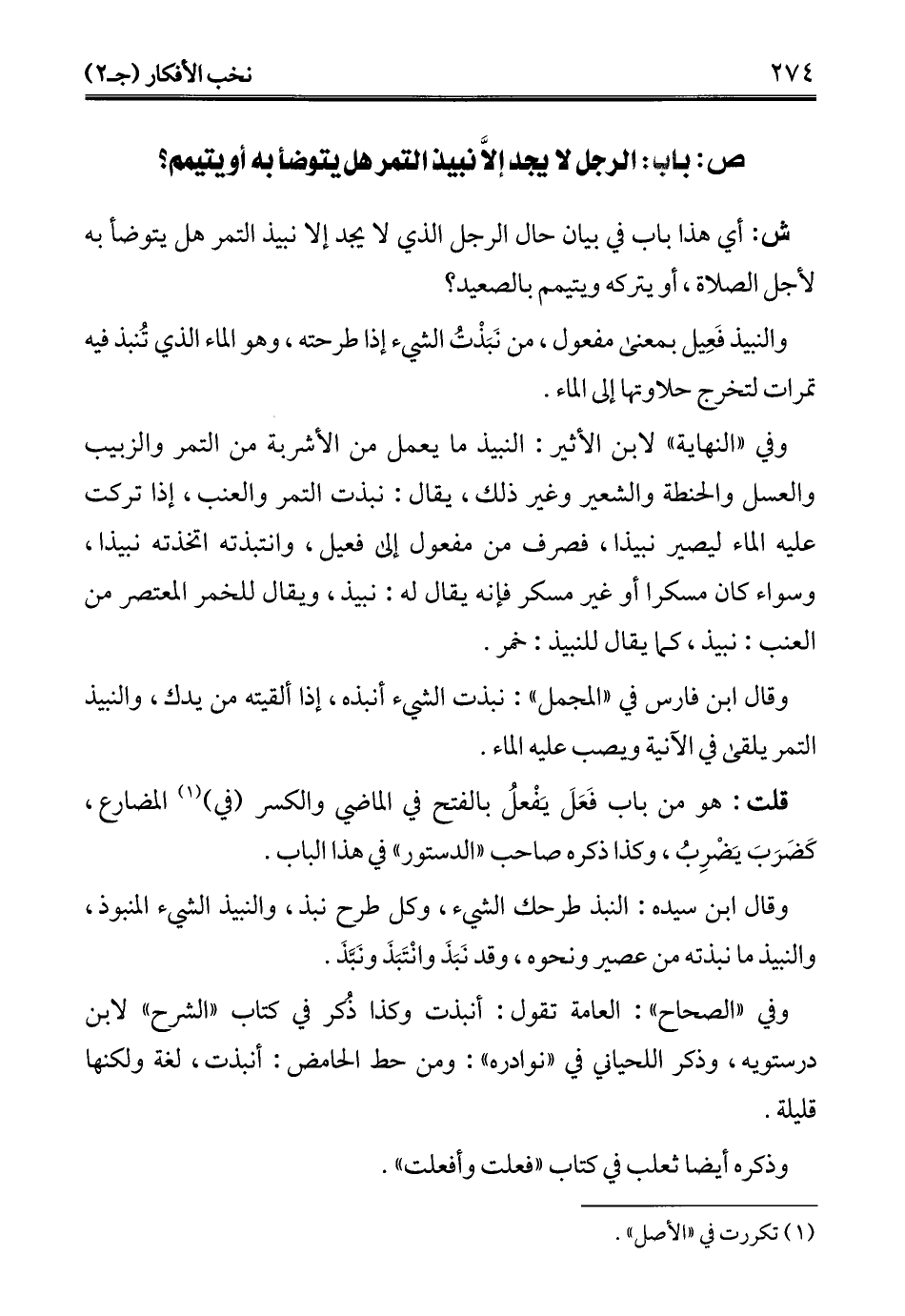 ص: باب: الرجل لا يجد إلَّا نبيذ التمر هل يتوضأ به أو يتيمم؟