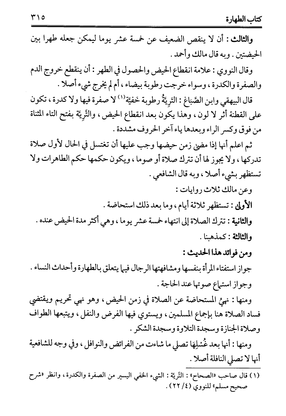 (¬1) قال صاحب "الصحاح": التَّريَّة: الشيء الخفي اليسير من الصفرة والكدرة، وانظر "شرح صحيح مسلم" للنووي (4/ 22).