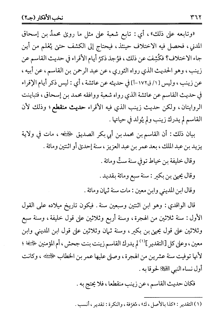 فكان حديث القاسم، عن زينب منقطعا، فلا يحتج به.