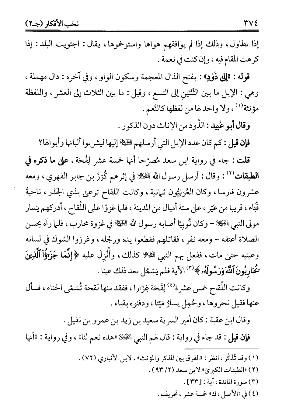 فإن قيل: قد جاء في رواية: قال لهم النبي - عليه السلام - "هذه نعم لنا"، وفي رواية: "أنها