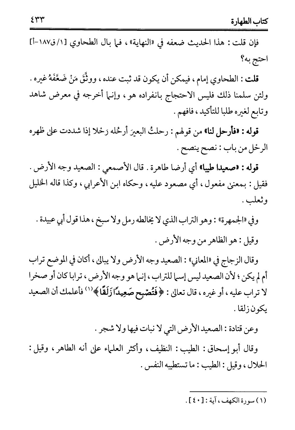 فإن قلت: هذا الحديث ضعفه في "النهاية"، فما بال الطحاوي احتج به؟