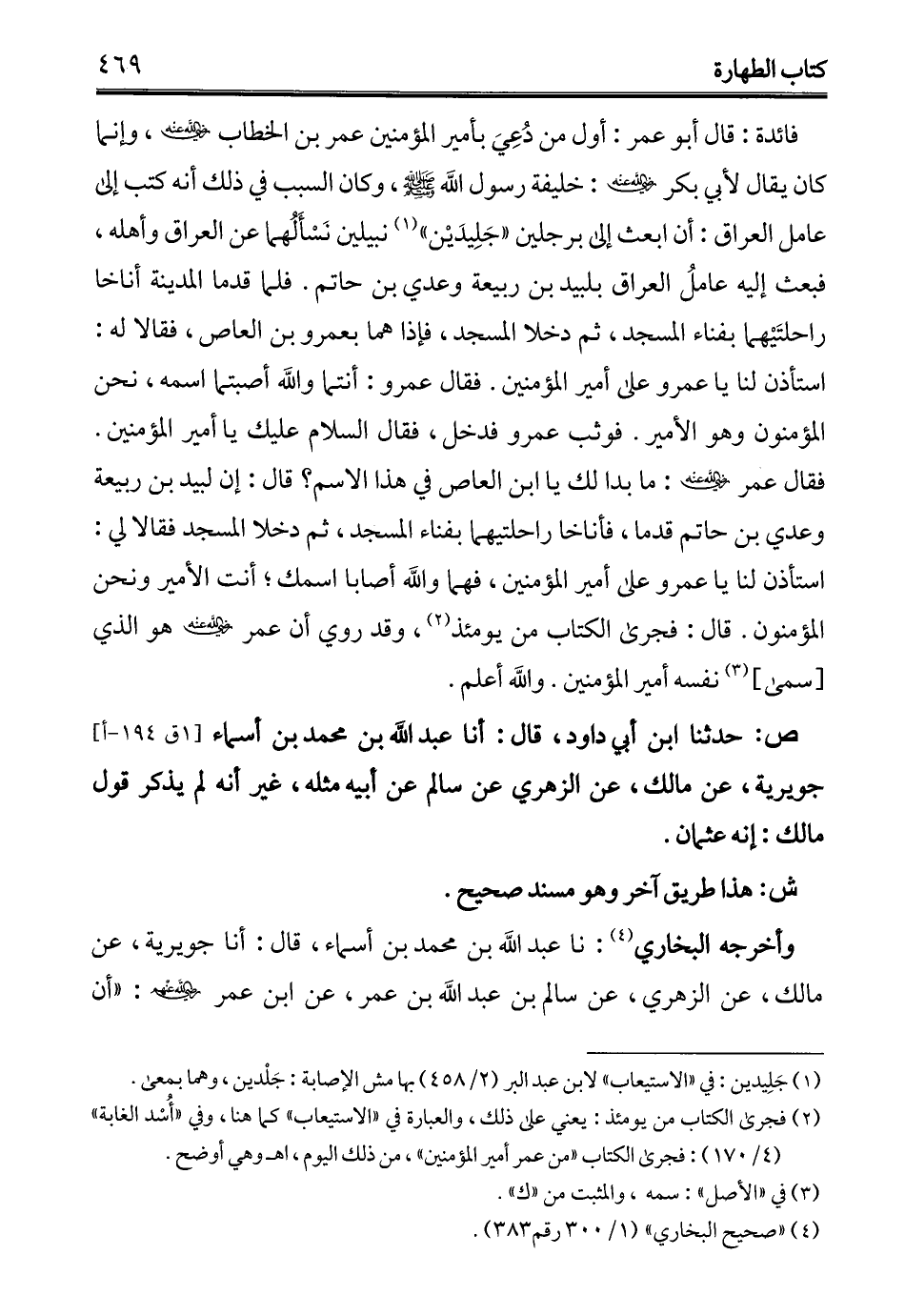 (¬2) فجرى الكتاب من يومئذ: يعني على ذلك، والعبارة في "الاستيعاب" كما هنا، وفي "أُسْد الغابة" (4/ 170): فجرى الكتاب "من عمر أمير المؤمنين"، من ذلك اليوم، اهـ وهي أوضح.
