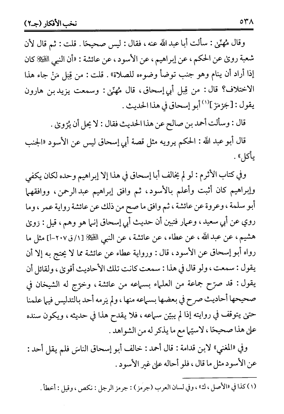 وفي "المغني" لابن قدامة: قال أحمد: خالف أبو إسحاق الناسَ فلم يقل أحد: عن الأسود مثل ما قال، فلو أحاله على غير الأسود.
