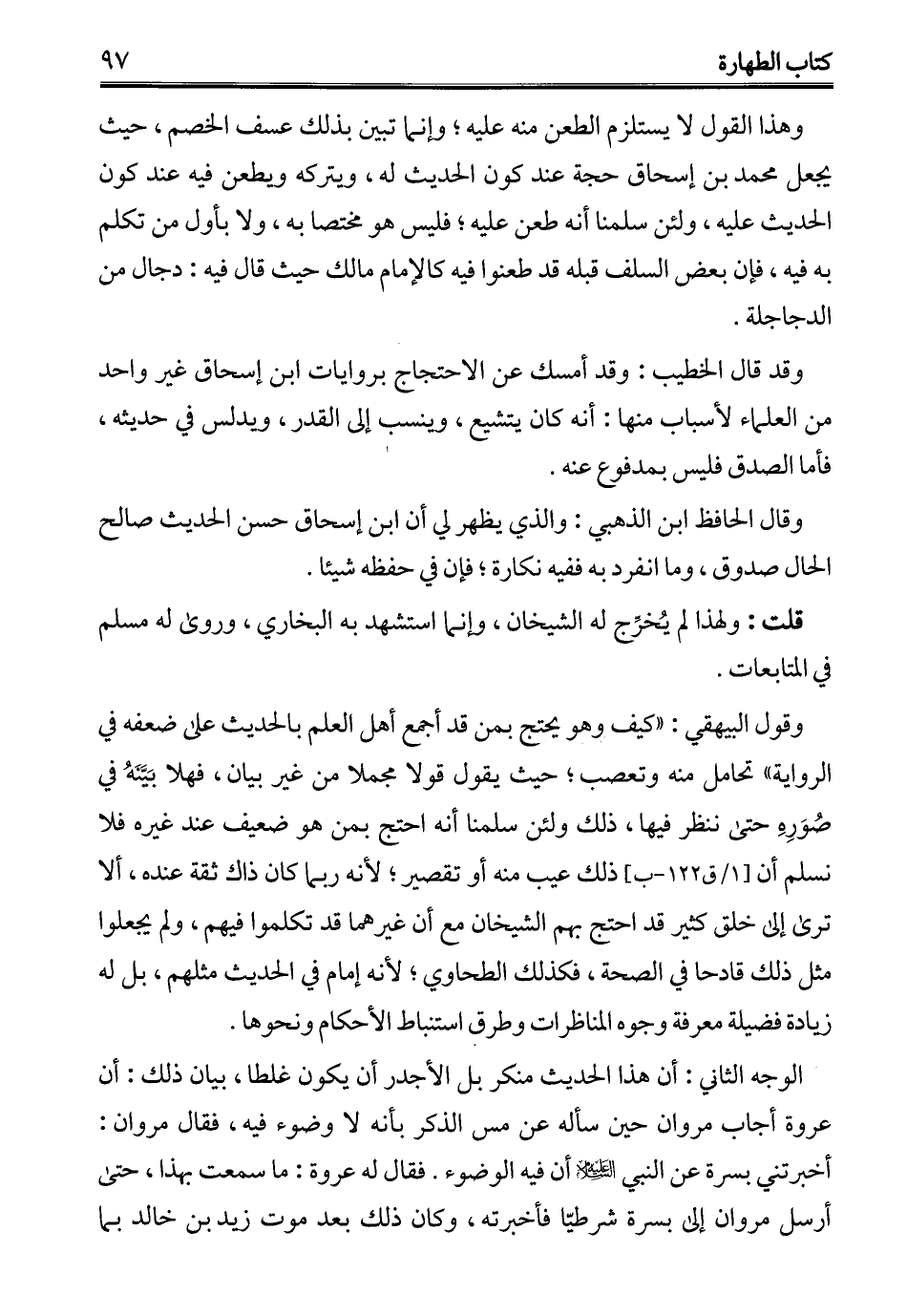 وقال الحافظ ابن الذهبي: والذي يظهر لي أن ابن إسحاق حسن الحديث صالح الحال صدوق، وما انفرد به ففيه نكارة؛ فإن في حفظه شيئًا.