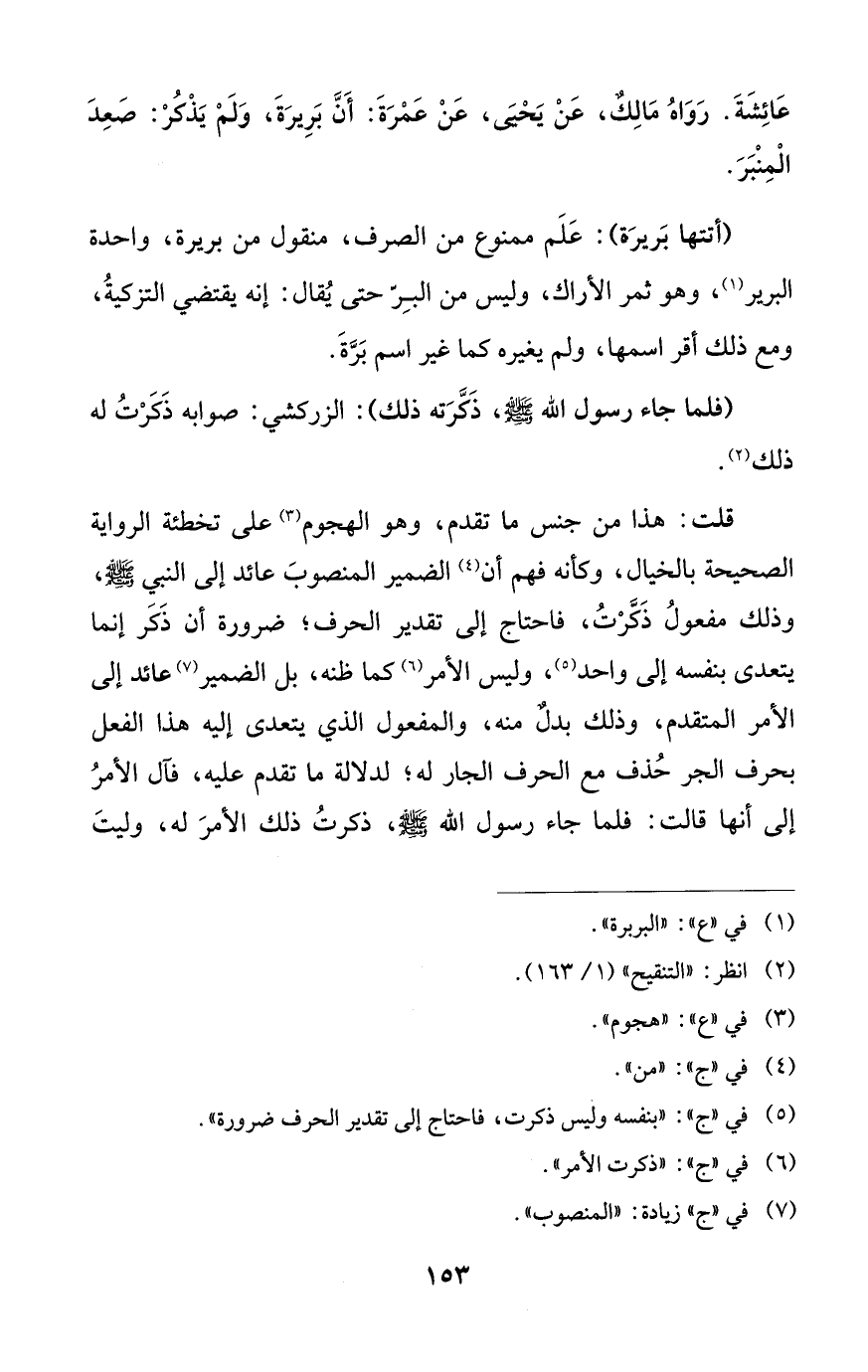 عَائِشَةَ. رَوَاهُ مَالِكٌ، عَنْ يَحْيَى، عَنْ عَمْرَةَ: أَنَّ بَرِيرَةَ، وَلَمْ يَذْكُرْ: صَعِدَ الْمِنْبَرَ.