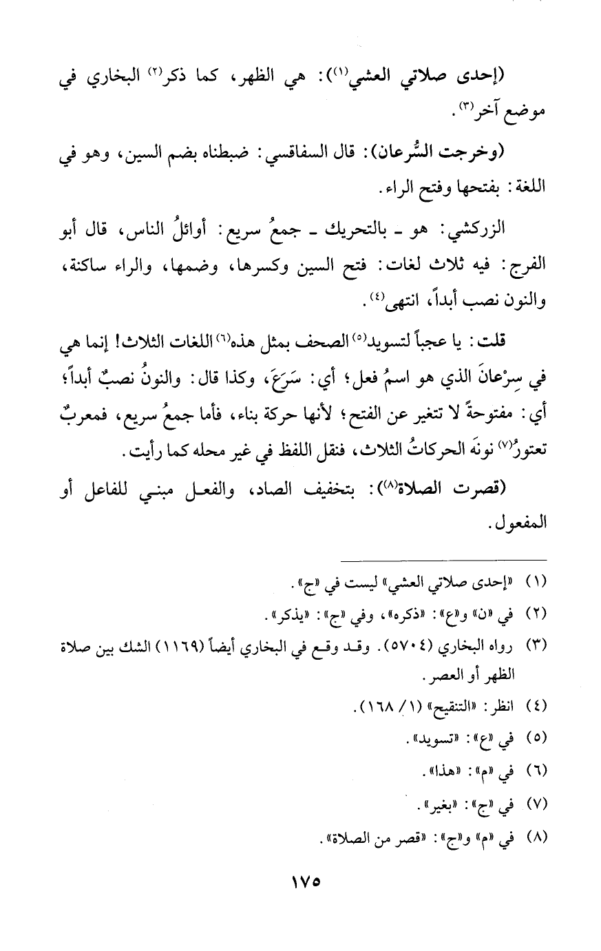 قلت: يا عجبًا لتسويد (¬5) الصحف بمثل هذه (¬6) اللغات الثلاث! إنما هي في سِرْعانَ الذي هو اسمُ فعل؛ أي: سَرَعَ، وكذا قال: والنونُ نصبٌ أبدًا؛ أي: مفتوحةً لا تتغير عن الفتح؛ لأنها حركة بناء، فأما جمعُ سريع، فمعربٌ تعتورُ (¬7) نونَه الحركاتُ الثلاث، فنقل اللفظ في غير محله كما رأيت.