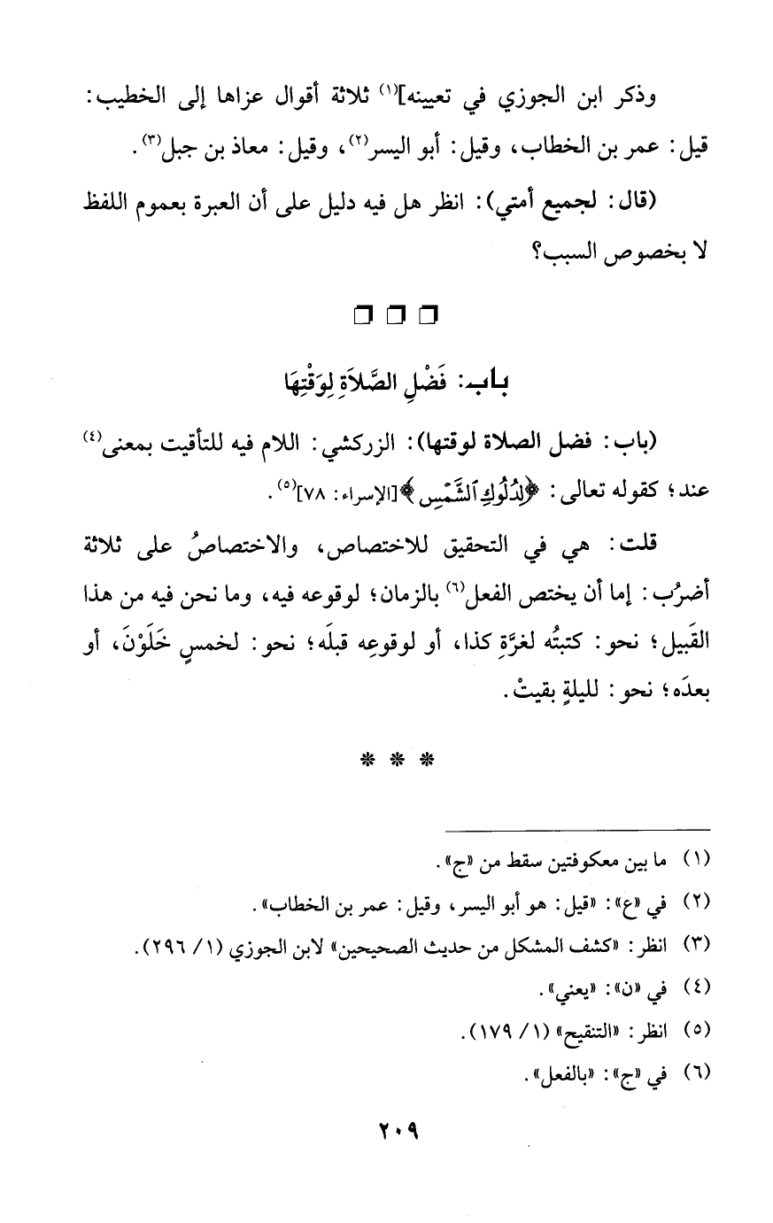(باب: فضل الصلاة لوقتها): الزركشي: اللام فيه للتأقيت بمعنى (¬4) عند؛ كقوله تعالى: {لِدُلُوكِ الشَّمْسِ} [الإسراء: 78] (¬5).