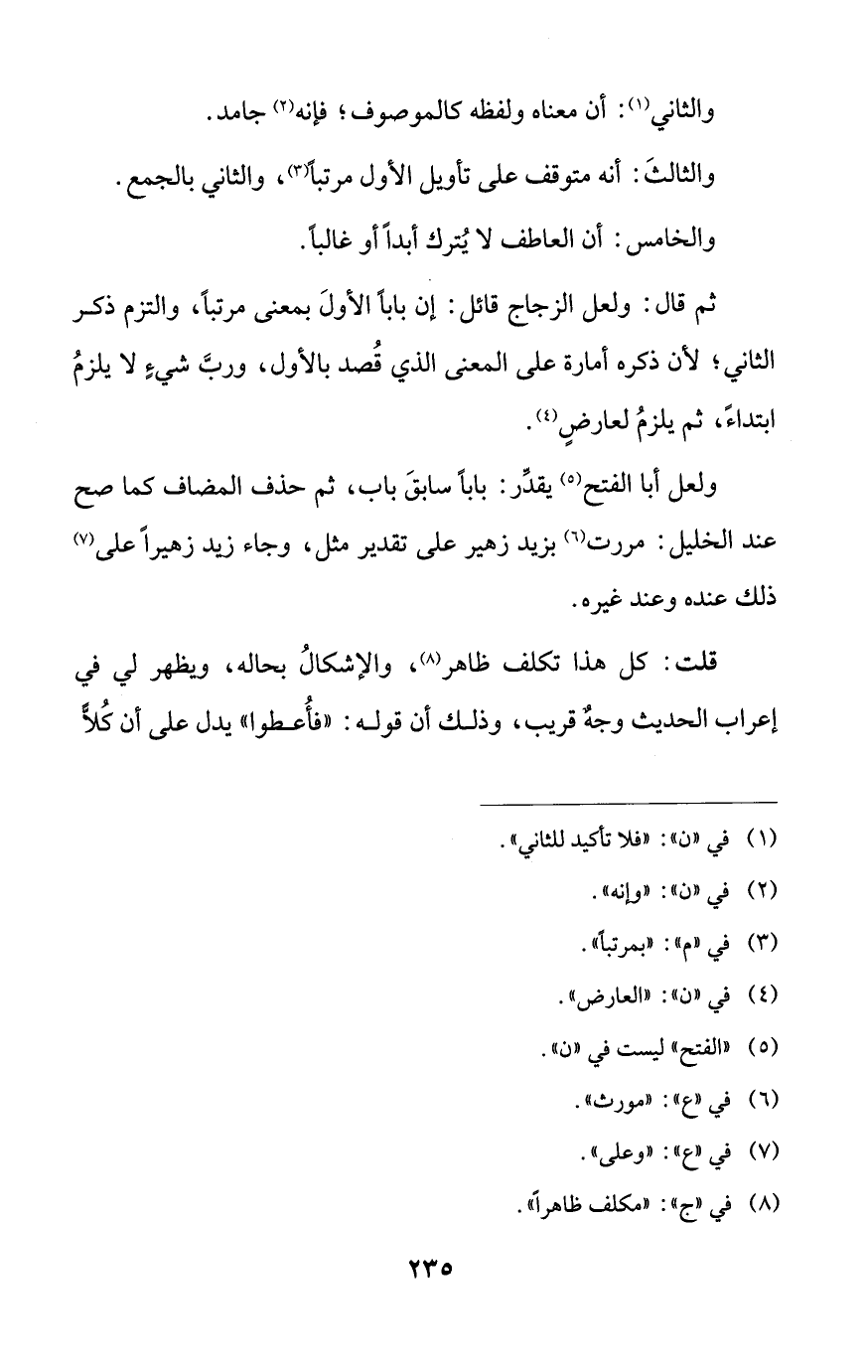 ولعل أَبا الفتح (¬5) يقدِّر: بابًا سابقَ باب، ثم حذف المضاف كما صح عند الخليل: مررت (¬6) يزيد زهير على تقدير مثل، وجاء زيد زهيرًا على (¬7) ذلك عنده وعند غيره.