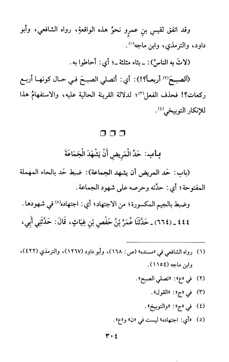 باب: حَدِّ الْمَرِيضِ أَنْ يَشْهَدَ الْجَمَاعَةَ