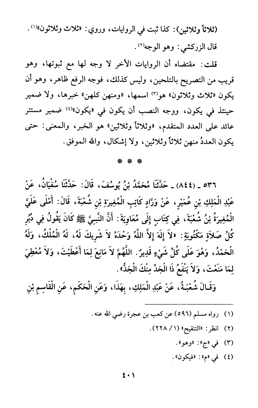 (ثلاثًا وثلاثين): كذا ثبت في الروايات، وروي: "ثلاث وثلاثون" (¬1).