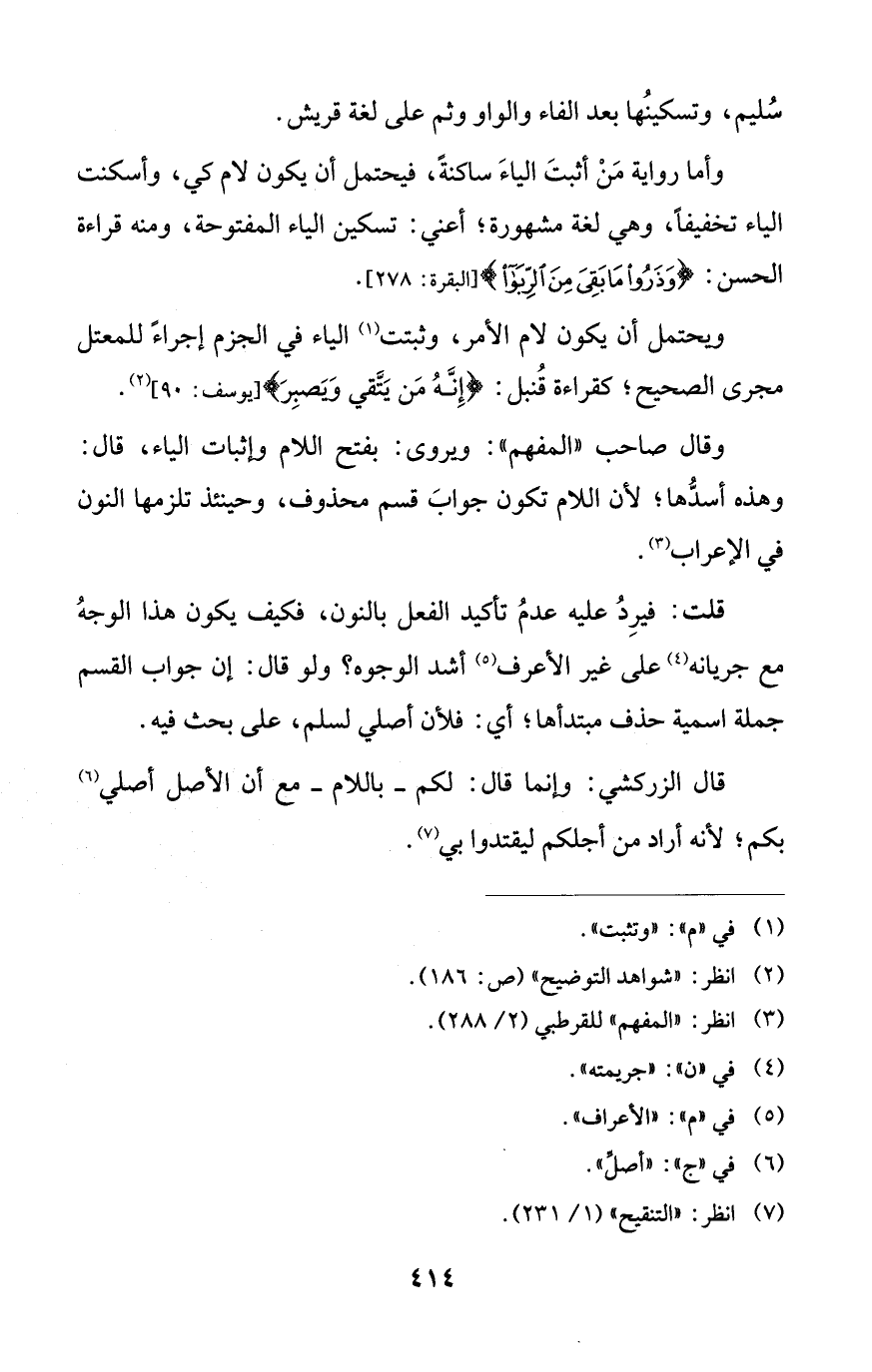 ويحتمل أن يكون لام الأمر، وثبتت (¬1) الياء في الجزم إجراءً للمعتل مجرى الصحيح؛ كقراءة قُنبل: {إِنَّهُ مَنْ يَتَّقِ وَيَصْبِرْ} [يوسف: 90] (¬2).
