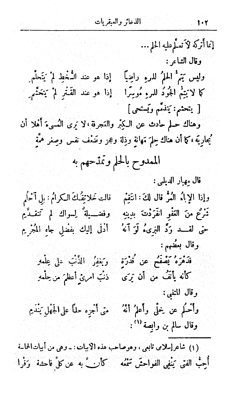 كأنّه يأنَفُ مِنْ أنْ يَرى ... ذَنْبَ امْرِئٍ أعظمَ مِنْ حِلْمِهِ