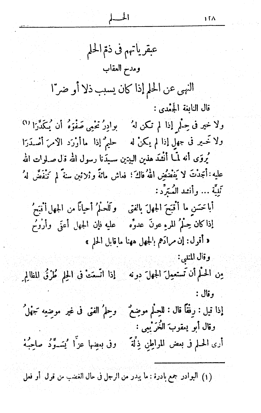 عبقرياتهم في ذمِّ الحِلْمِ ومَدْحِ العِقاب
