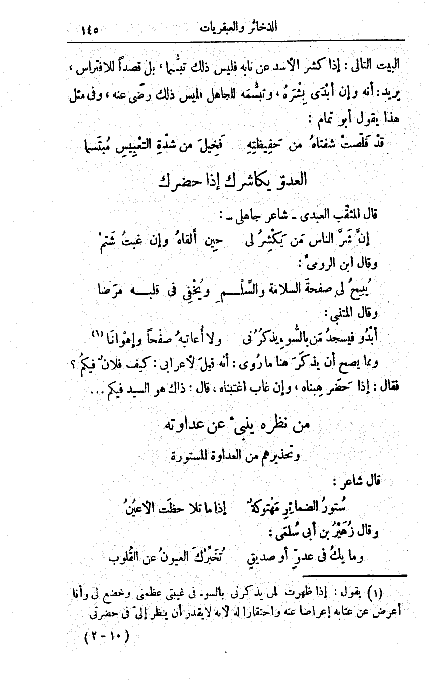 البيت التالي: إذا كشّر الأسدُ عن نابه فليس ذلك تبسُّماً، بل قَصْداً للافتراس، يريد: أنّه وإنْ أبْدى بِشْرَه، وتبسُّمَه للجاهلِ فليس ذلك رضىً عنه، وفي مثل هذا يقول أبو تمام: