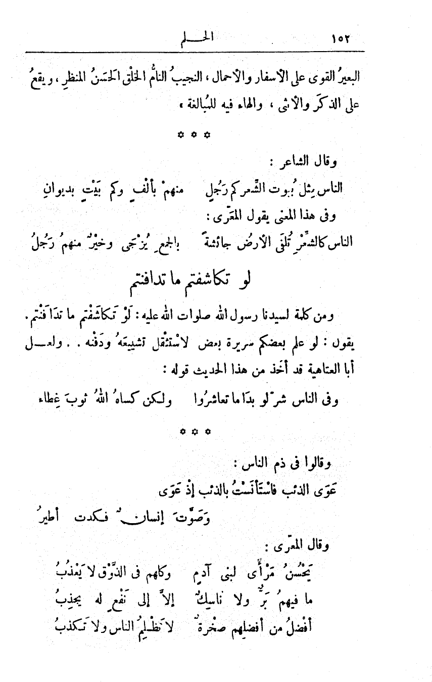 الناسُ مِثلُ بيوتِ الشِّعْرِ كَمْ رَجلٍ ... مِنْهُمْ بألْفٍ وكَمْ بيتٍ بِديوانِ