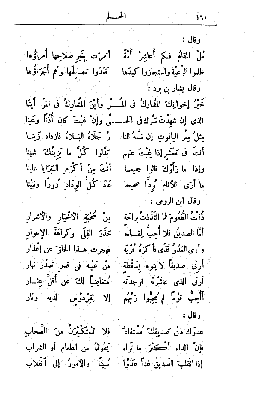 عَدوُّك مِنْ صَديقِكَ مُسْتفادٌ ... فلا تَسْتَكْثِرنَّ مِنَ الصِّحابِ