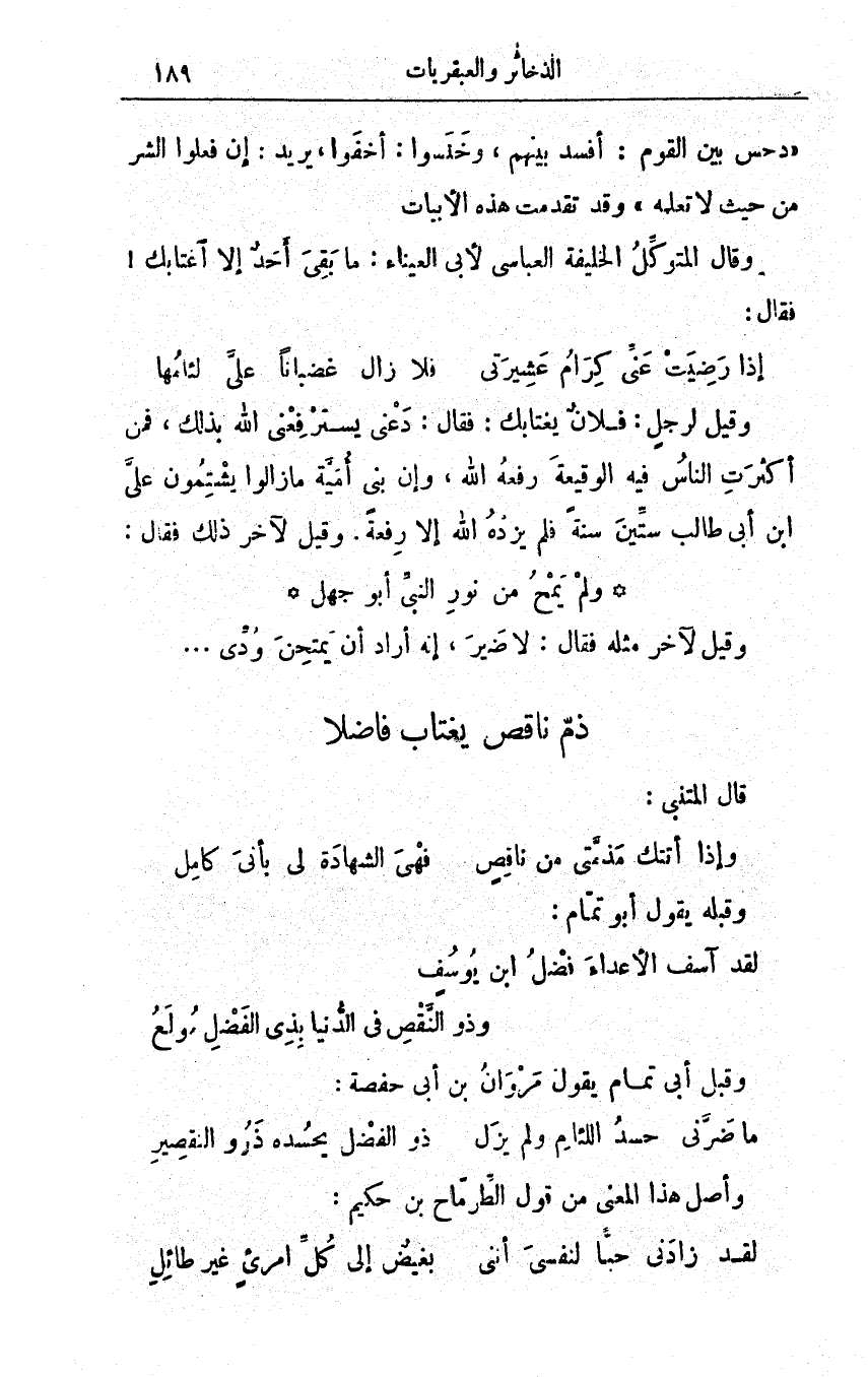 وإذا أتَتْك مَذَمّتي من ناقِصٍ ... فهْيَ الشهادةُ لي بأنّيَ كامِلُ