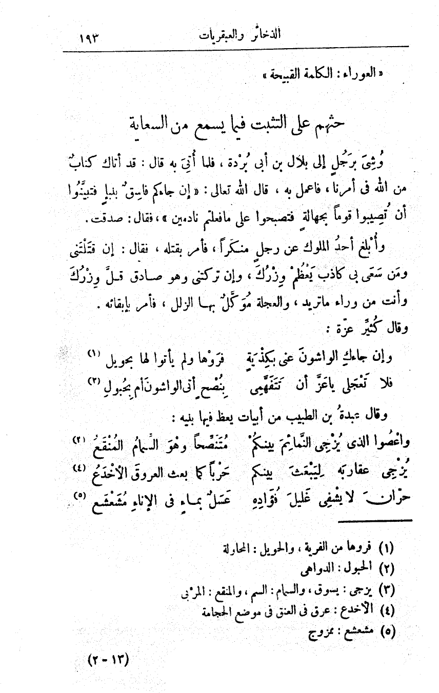 وقال عبدة بن الطبيب من أبيات يعظ فيها بنيه: