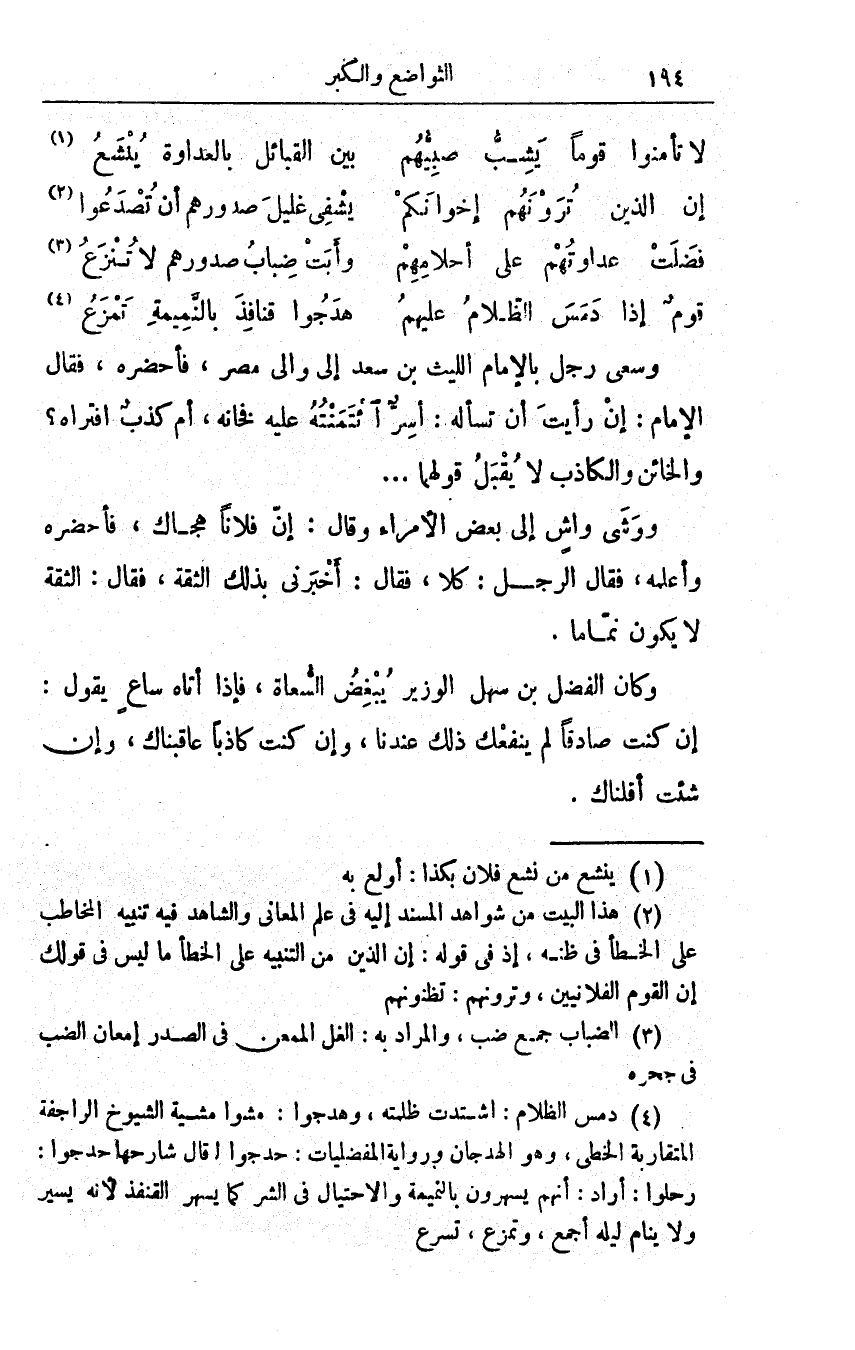 وسعى رجلٌ بالإمام الليث بن سعد إلى والي مصر، فأحضره، فقال الإمام: إنْ رأيْتَ أن