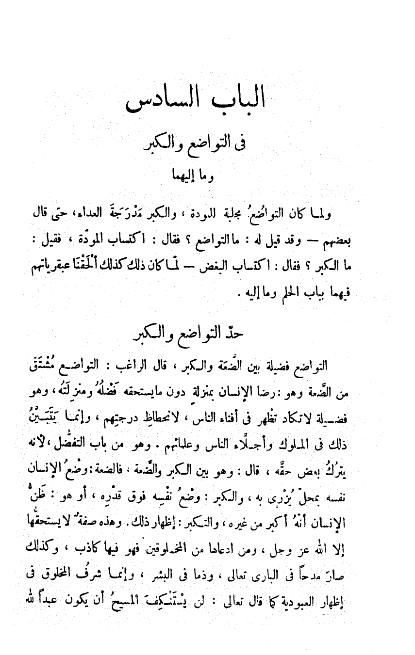 الباب السادس في التواضع والكبر