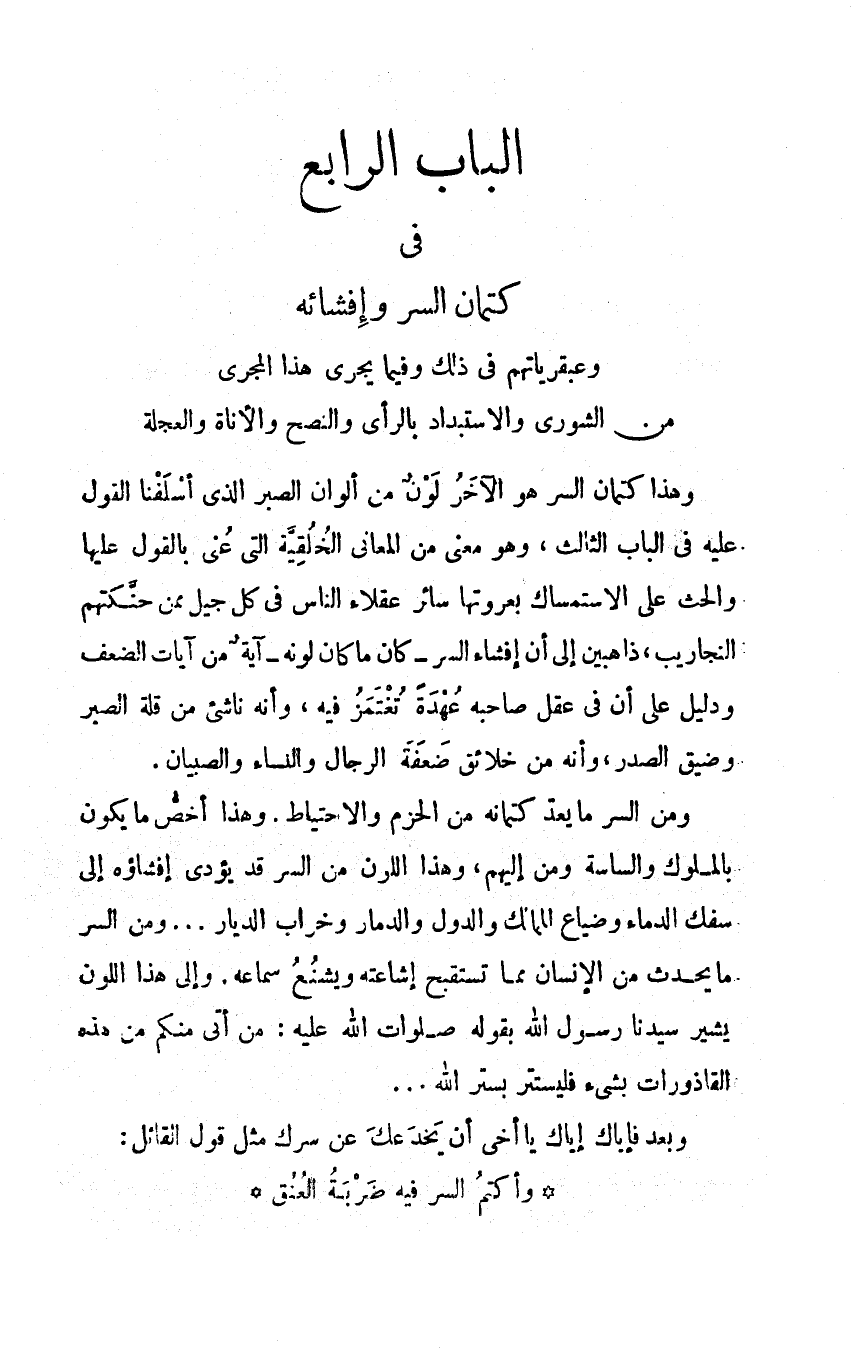 الباب الرابع في كتمانِ السرِّ وإفشائه