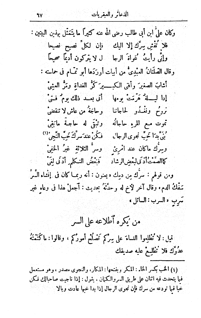 بُنَيَّ بَدا خَِبُّ نجوى الرجال ... فكُن عندَ سِرِّكَ خَِبَّ النّجِيْ
