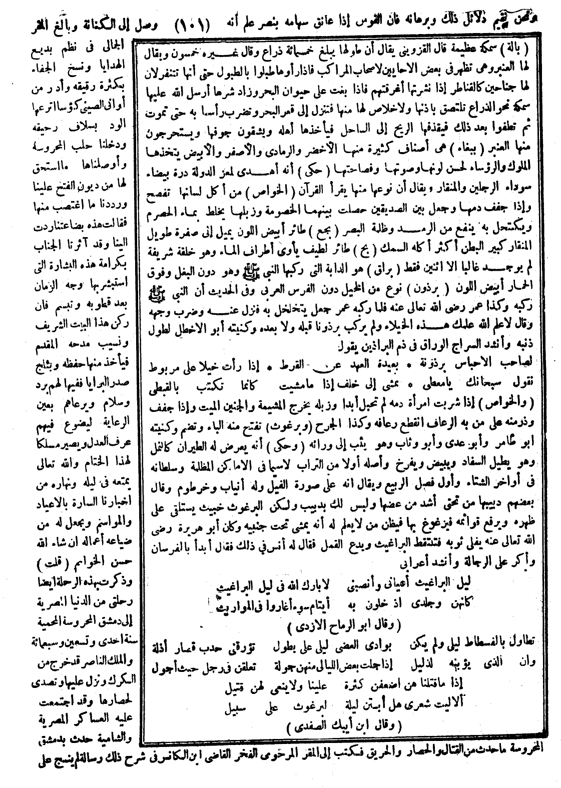 قلت وذكرت بهذه الرحلة أيضا رحلتي من الديار المصرية إلى دمشق المحروسة المحمية سنة إحدى وتسعين وسبعمائة والملك الناصر قد خرج من الكرك ونزل عليها وتصدى لحصارها وقد اجتمعت عليه العساكر المصرية والشامية وحدث بدمشق المحروسة ما حدث من القتال والحصار والحريق فكتبت إلى مقر المرحومي الفخر القاضي ابن مكانس في شرح ذلك رسالة لم ينسج على