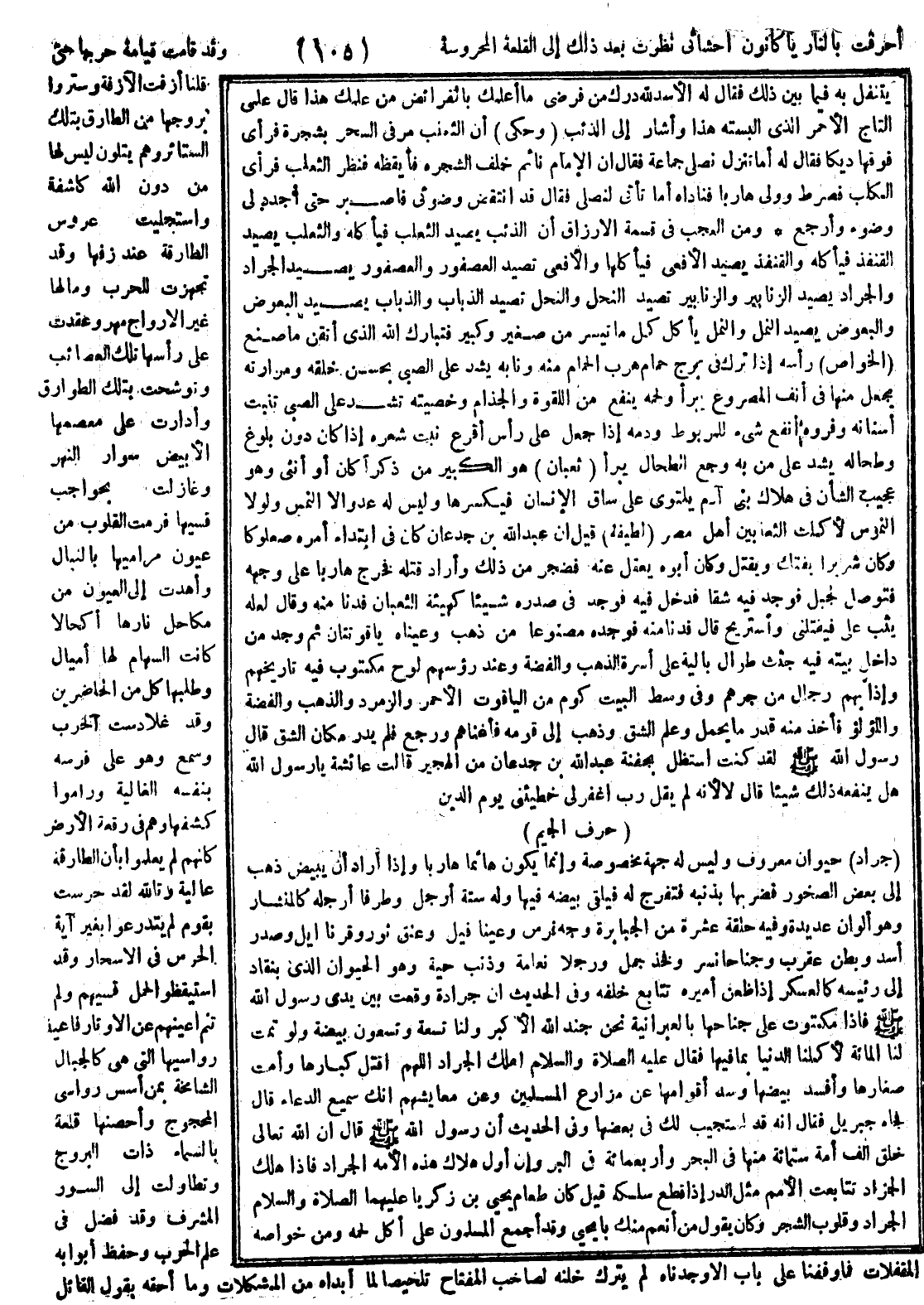 ونظرت بعد ذلك إلى قلعة المحروسة وقد قامت قيامة حربها حتى قلنا أزفت الآزقة؛ وستروا بروجها من الطارق بتلك الستائر وهم يلتون ليس لها من دون الله كاشفة؛ واستجليت عروس الطارقة عند زفها وقد تجهزت للحرب وما لها غير الأرواح مهر؛ وعقدت على رأسها تلك العصائب وتوشحت بتلك الطوارق وأدارت على معصمها الأبيض سوار النهر؛ وغازلت بحواجب قسيها فرمت القلوب من عيون مراميها بالنبال؛ وأهدت إلى العيون من مكاحل نارها أكحالا كانت السهام لها أميال؛ وطلبها كل من الحاضرين وقد غلا دست الحرب وسمع وهو على فرسه بنفسه الغالية؛ وراموا كشفها وهم في رقعة الأرض كأنهم لم يعلموا بأن الطارقة علية؛ وتالله ولقد حرست بقوم لم يتدرعوا بغير آية الحرس في الأسحار؛ وقد استيقظوا الحمل قسيهم ولم تنمّ أعينهم عن الأوتار؛ فأعيذ رواسيها التي هي كالجبال الشامخة بمن أسس رواسي المحجوج؛ وأحصنها القلعة بالسماء ذات البروج؛ وتطاولت إلى السور المشرف وقد فضل في علم الحرب وحفظ أبوابه المقفلات؛ فما وقفنا على باب إلا وجدناه لم يترك خلفه لصاحب المفتاح تخليصا لما أبداه من المشكلات؛ وما أحقه بقول القائل: