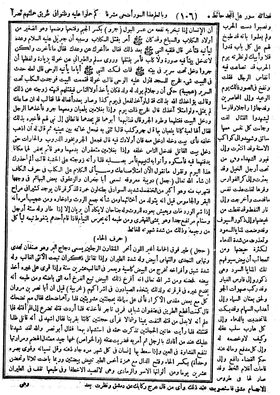 كم حملوا عليه وظنوا في طريق حملتهم نصرا، ونصبوا دست الحرب ولم يعلموا بأنه قد طبخ لهم على كل باب قدراً، فلا وأبيك لو نظرته يوم الحرب قد تصاعد فيه أنفاس الرجال لقلت ونفخ في الصور ذلك يوم الوعيد، وإلى المحاصرين وقد جاؤوا راجلاً وفارسا ليشهدوا القتال لقلت وجاءت كل نفس معها سائق وشهيد، وإلى كواكب الأسنة وقد انتثرت، وإلى قبور الشهداء وهي من تحت أرجل الخيل قد بعثرت، وإلى كرَّ الفوراس وفرِّها لقلت علمت نفس ما قدمت وأخرتن وإلى نار النفط وقد نفطت من غيضها، وإلى ذكور السيوف وقد وضعت لمنايا السعود وتعذرت من شدة الدماء لكثرة حيضها، ومن العجائب أن بيض سيوفهم تلك المنايا السود وهي الذكور وإلى فارس الغبار وقد ركب صهوات الجو ولحق بعنان السماء، وإلى أهداب السهام وقد بكت لما تخضبت بالدماء، وإلى كل هارب سلب عقله وكيف لا وخصمه له، وإلى كل مدفع وما له عند حكم القضاء دافع، وإلى قامات أقلام الخط وقد صار لها في طروس الأجسام مشق، فاستصوبت عند ذلك رأي من قال: عرّج ركابك عن دمشق، ونظرت بعد