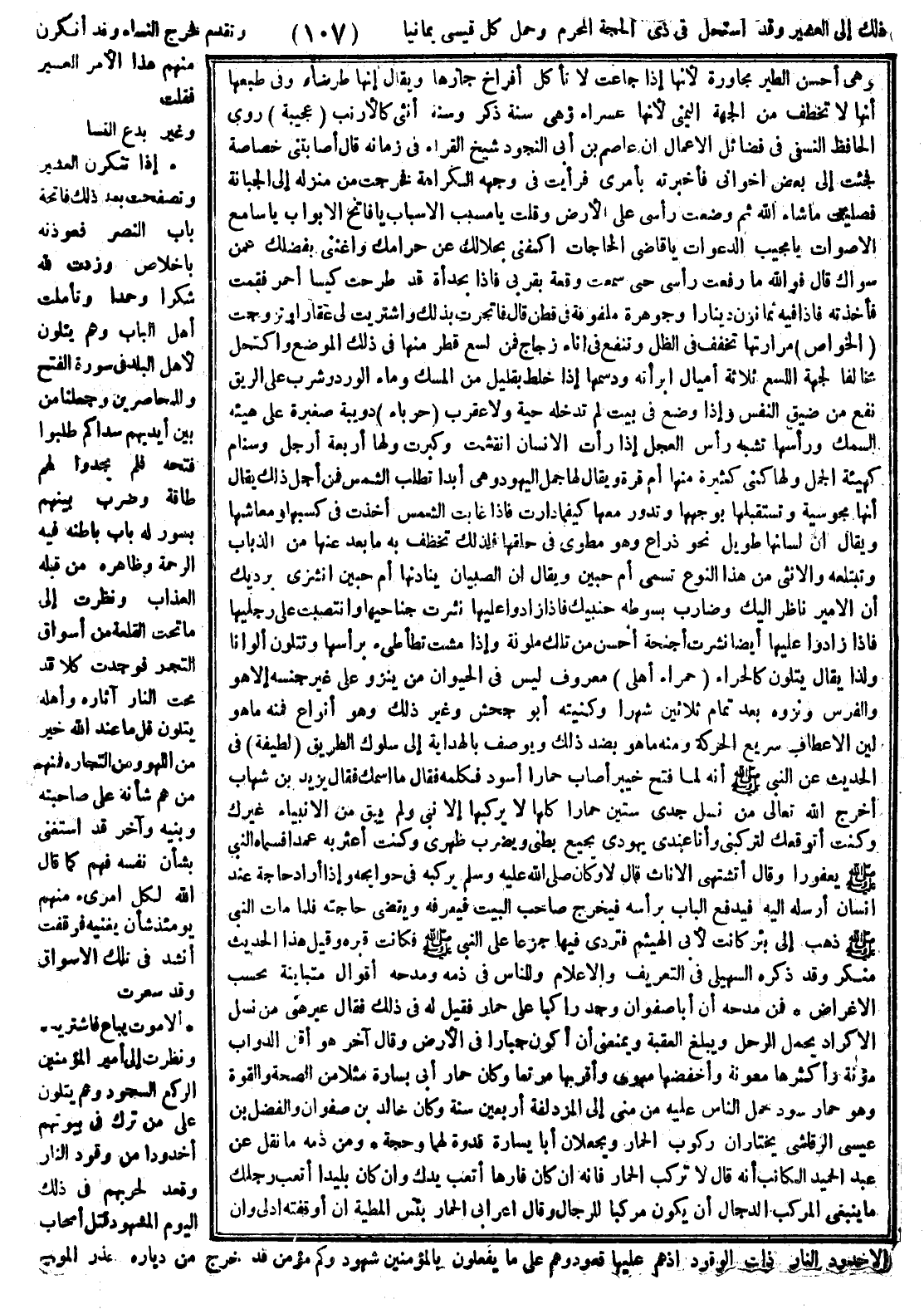 وتصفحت بعد ذلك فاتحة باب النصر فعوذته بالإخلاص وزدت لله شكرا وحمدا، وتأملت أهل الباب وهم يتلون لأهل البلد في سورة الفتح وللمحاصرين وجعلنا من بين أيديهم سدّاً، كم طلبوا فتحه فلم يجدوا لهم طاقة وضرب بينهم بسور له باب باطنه فيه الرحمة وظاهره من قبله العذاب، ونظرت إلى ما تحت القلعة من أسواق التجار فوجدت كلا قد محت النار آثاره وأهله يتلون قل ما عند الله خير من اللهو ومن التجارة، فمنهم من همُّ شأنه على صاحبته وبنيه، وآخر قد استغنى بشأن نفسه فهم كما قال الله لكل امرىء منهم يومئذ شأن يغنيه، فوقفت أنشد في تلك الأسواق وقد شعرت: