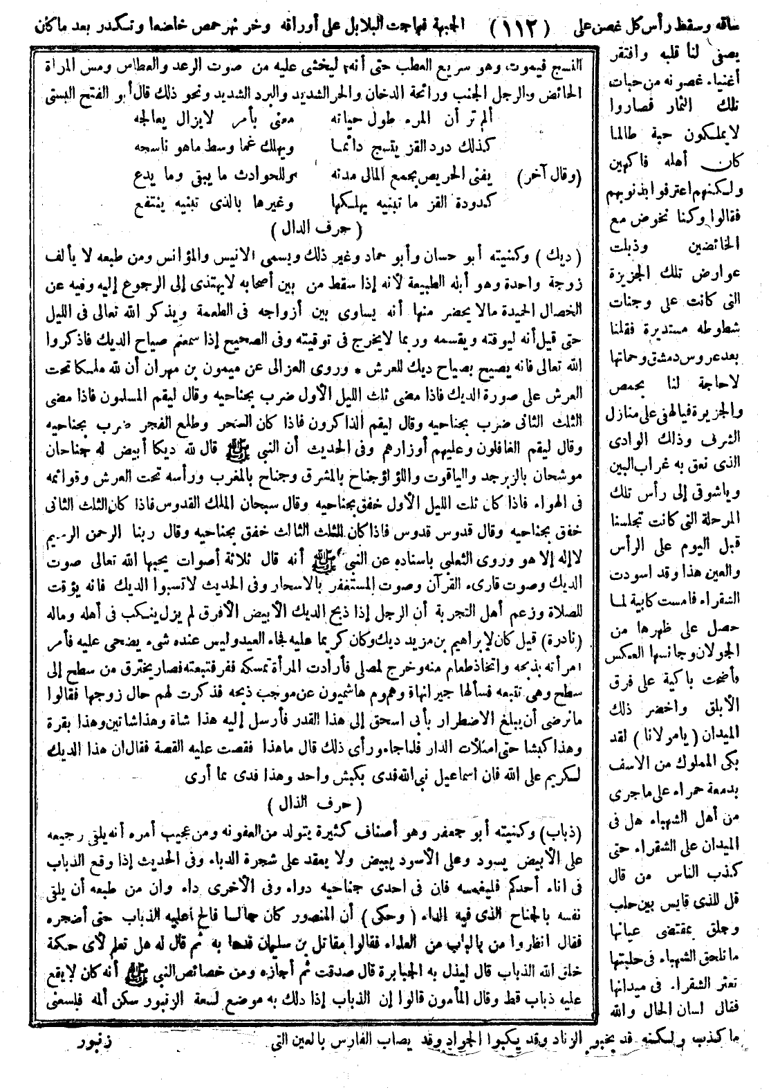ساقه، وسقط براس كل غصن على الجبهة فهاجت البلابل على أوراقه، وخرّ نهر حمص خاضعا وتكدر بعد ما كان يصفي لنا قلبه، وافتقر أغنياء غصونه من حبات تلك الثمار فصاروا لا يملكون حبة، طالما كان أهله فاكهين، ولكنهم اعترفوا بذنوبهم فقالوا: وكنا نخوض مع الخائضين، وذبلت عوارض تلك الجزيرة التي كانت على وجنات شطوطه مستديرة، فقلنا بعد عروس دمشق وحماتها لا حاجة لنا بحمص والجزيرة، فيا لهفي على منازل الشرف وذلك الوادي الذي نعق به غراب البين، ويا شوقي إلى رأس تلك المرحلة التي كانت تجلسنا قبل اليوم على الرأس والعين، هذا وقد اسودت الشقراء فأمست كابية لما حصل على ظهرها من الجولان، وجانسها العكس فأضحت باكية على فراق الأبلق واخضر ذلك الميدان، يا مولانا لقد بكى المملوك من الأسف بدمعة حمراء على ما جرى من أهل الشهباء، هل في الميدان على الشقراء حتى كذّب الناس من قال: