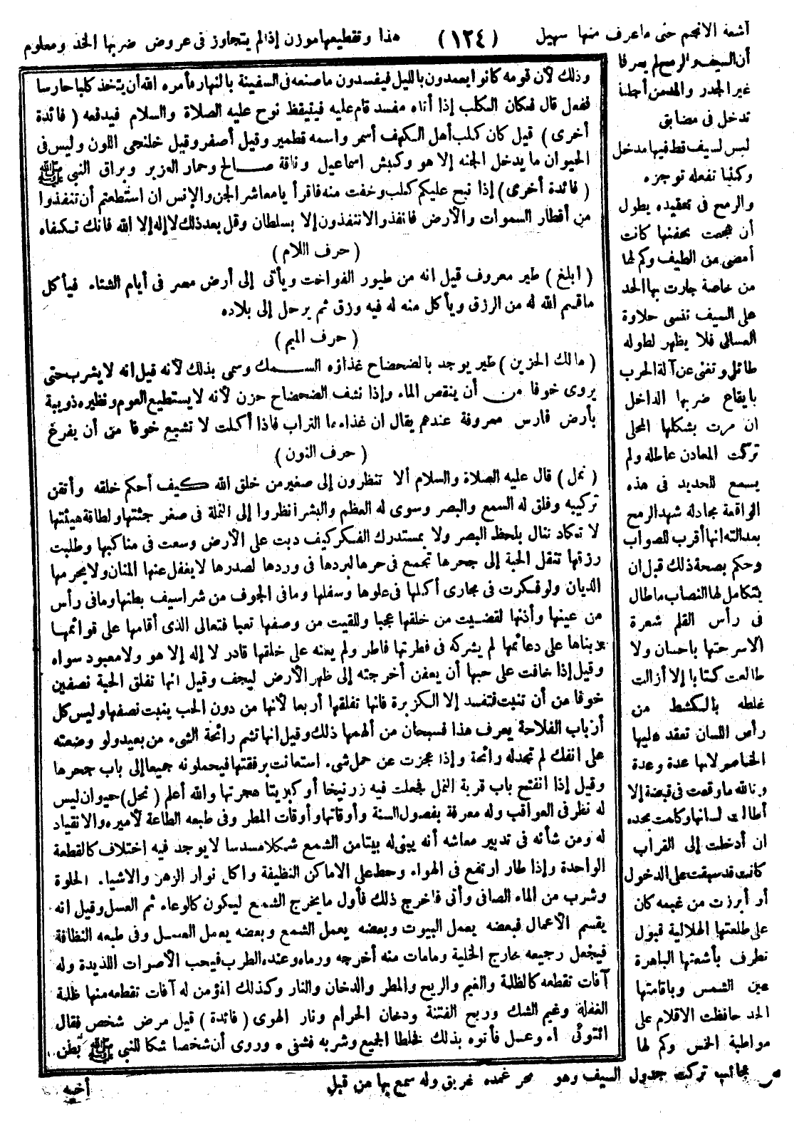 أشعة الأنجم حتى ما عرفت منها سهيل، هذا وتقطيعها موزون إذ لم يتجاوز في عروض ضربها الخد، ومعلوم أن السيف والرمح لم يعرفا غير الجزر والمد: