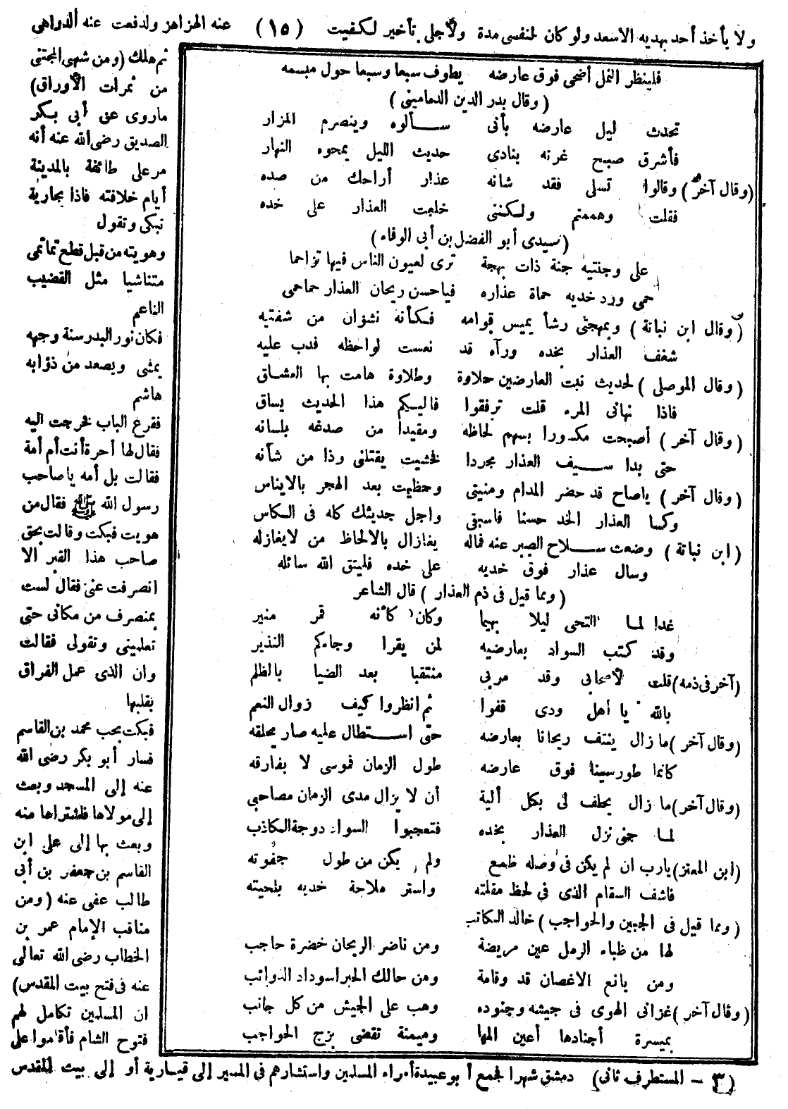 ومن شهي المجتنى من ثمرات الأوراق ما روي عن أبي بكر الصديق رضي الله عنه أنه مر على طائفة بالمدينة أيام خلافته فإذا بجارية تبكي وتقول: