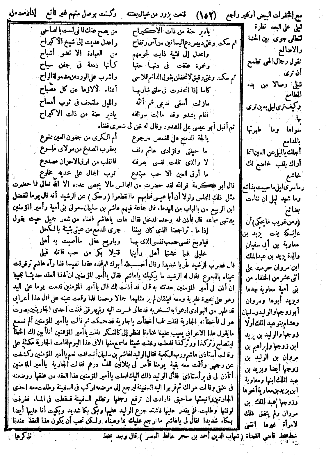 ومن غريب ما يحكى أن عاتكة بنت يزيد بن معاوية بن أبي سفيان والدة يزيد بن عبد الملك بن مروان حرمت على اثني عشر من الخلفاء من بني أمية معاوية جدها ويزيد أبوها ومروان أبو زوجها والوليد وسليمان وهشام بنو عبد الملك أولاد زوجها والوليد بن يزيد بن ابنها ويزيد بن الوليد بن زوجها وابراهيم بن مروان بن الوليد بن زوجها أيضاً ويزيد من عبد الملك ابنها ومعاوية بن يزيد بن معاوية أخوها وزوجها عبد الملك بن مروان ولم يتفق ذلك لامرأة غيرها انتهى. وجد بخط قاضي القضاة. شهاب الدين أحمد بن حجر حافظ العصر قال وجد بخط