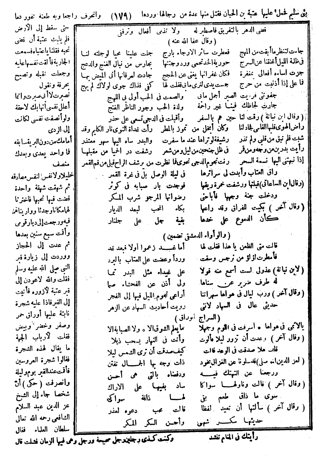 بني سليم فحمل عليها عتبة بن الحباب فقتل منها عدة من رجالها وردها وانحرف راجعاً وبه طعنة تفور دما حتى سقط إلى الأرض فلم يلبث عتبة أن قضى نحبه فقلنا يا عتباه فسمعت الجارية فألقت نفسها عليه وجعلت تقبله وتصيح بحرقة وتقول: