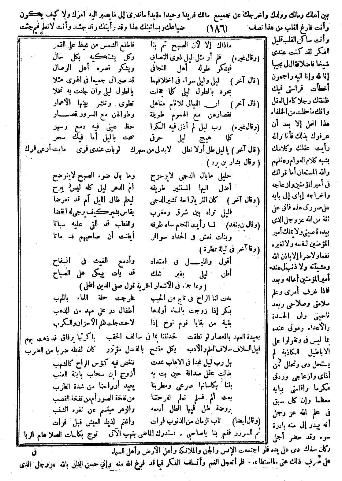 بين أهلك ومالك وولدك وأخرجك عن جميع ما لك فريداً وحيداً مقيداً ما تدري إلى ما يصير إليه أمرك ولا كيف يكون وأنت فارغ القلب من هذا تصف ضياعك وبساتينك هذا وقد رأيتك وقد جئت وأنت لا تعلم فيم جئت وأنت ساكن القلب قليل الفكر لقد كنت عندي شيخاً فاضلاً فقال لي مجيباً إنا لله وإنا إليه راجعون أخطأت فراستي فيك ظننتك رجلاً كامل العقل وأنك ما حللت من الخلفاء هذا المحل إلا بعد أن عرفك بذلك فإنا والله رأيت عقلك وكلامك يشبه كلام العوام وعقلهم والله المستعان أما قولك في أمير المؤمنين وإزعاجه وإخراجه إياي إلى بابه على صورتي هذه فإني على ثقة من الله عز وجل الذي بيده ناصيتي ولا يملك أمير المؤمنين لنفسه ولا لغيره نفعاً ولا ضرا إلا بإذن الله ومشيئته ولا ذنب لي عند أمير المؤمنين أخافه وبعد فإذا عرف أمري وعلم سلامتي وصلاحي وبعد ناحيتي وإن الحسدة والاعداء رموني عنده بما ليس فيَّ وتقوّلوا عليَّ الأباطيل الكاذبة لم يستحل دمي وتحلل من أذاي وإزعاجي وردني مكرما وأقامني ببابه معظماً وإن كان سبق في علم الله عز وجل أنه يبدر إليَّ منه بادرة سوء وقد حضر أجلي وكان سفك دمي على يده فلو اجتمعت الأنس والجن والملائكة وأهل الأرض وأهل السماء على صرف ذلك عني ما استطاعوه فلم أتعجل الغم وأتسلف الفكر فيما قد فرغ الله منه وإني حسن الظن بالله عز وجل الذي
