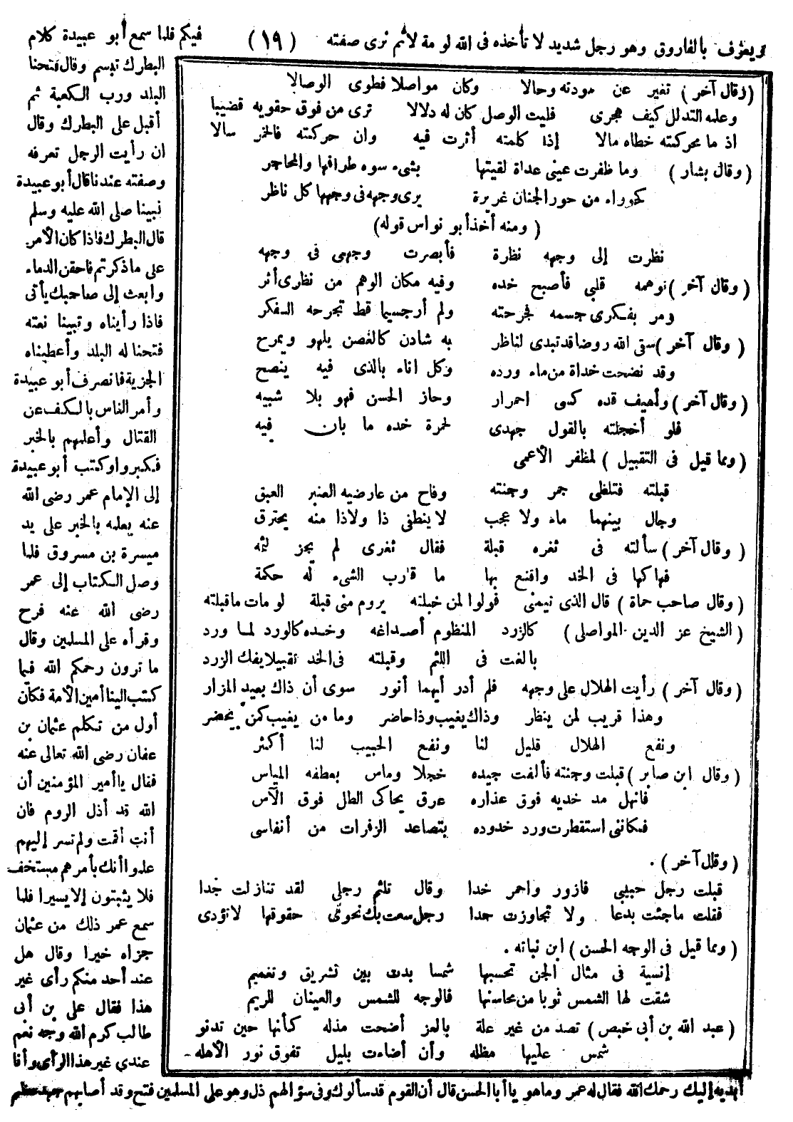 قال البطرك فإذا كان الأمر على ما ذكرتم فأحقن الدماء وابعث إلى صاحبك يأتي فإذا رأيناه وتبينا نعته فتحنا له البلد وأعطيناه الجزية فانصرف أبو عبيدة وأمر الناس بالكف عن القتال وأعلمهم بالخبر فكبروا وكتب أبو عبيدة إلى الإمام عمر رضي الله عنه يعلمه بالخبر على يد ميسرة بن مسروق فلما وصل الكتاب إلى عمر رضي الله عنه فرح وقرأه على المسلمين وقال ما ترون رحمكم الله فيما كتب إلينا أمين الأمة فكان أول من تكلم عثمان بن عفان رضي الله تعالى عنه فقال يا أمير المؤمنين إن الله قد أذل الروم فإن أنت أقمت ولم تسر إليهم علموا أنك بأمرهم مستخف فلا يثبتون إلا يسيراً فلما سمع عمر ذلك من عثمان جزاه خيراً وقال هل عند أحدهم منك رأي غير هذا فقال علي بن أبي طالب كرم الله وجهه نعم عندي غير هذا الرأي وأنا أبديه إليك رحمك الله فقال له عمر وما هو أبا الحسن قال إن القوم قد سألوك وفي سؤالهم ذل وهو على المسلمين فتح وقد أصابهم جهد عظيم