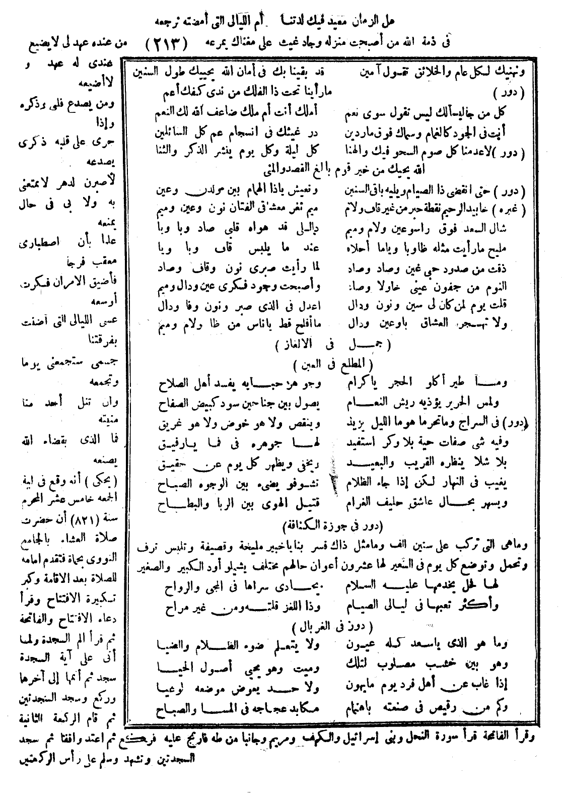 يحكى أنه وقع في ليلة الجمعة خامس عشر المحرم سنة 831أن حضرت صلاة العشاء بالجامع النووي بحماة فتقدم إمامه للصلاة بعد الإقامة وكبر تكبيرة الافتتاح وقرأ دعاء الإفتتاح والفاتحة ثم قرأ ألم السجدة ولما أتى على آية السجدة سجد ثم أتمها إلى آخرها وركع وسجد السجدتين ثم قام إلى الركعة الثانية وقرأ الفاتحة ثم قرأ سورة النحل وبني إسرائيل والكهف ومريم وجانبا من طه فأرتجَّ عليه فركع ثم اعتدل واقفاً ثم سجد السجدتين وتشهد وسلم على رأس الركعتين.
