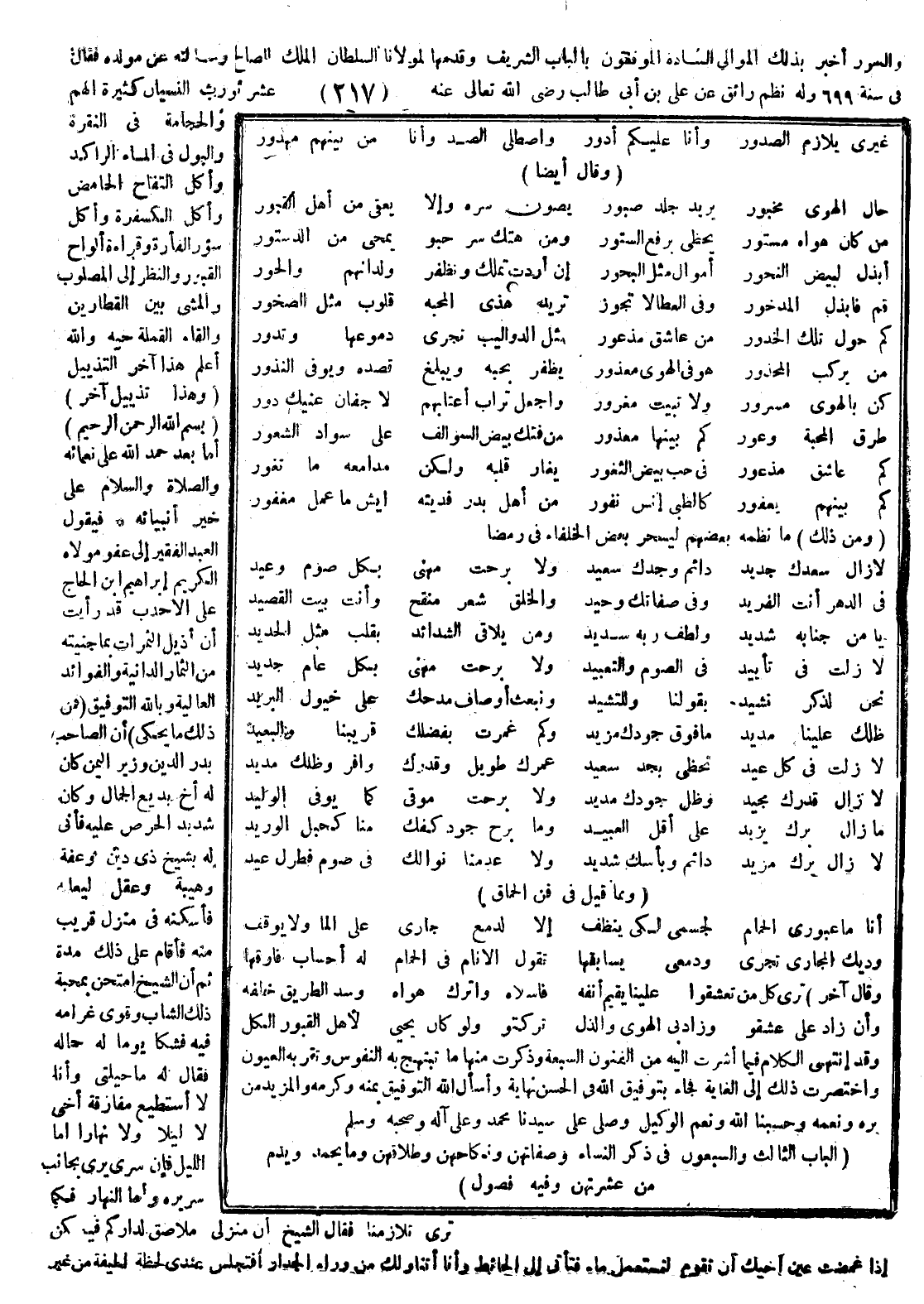 فمن ذلك ما يحكى أن الصاحب بدر الدين وزير اليمن كان له أخ بديع الجمال وكان شديد الحرص عليه فأتى له بشيخ ذي دين وعفة وهيبة وعقل ليعلمه فأسكنه في منزل قريب منه فأقام على ذلك مدة ثم إن الشيخ امتحن بمحبة ذلك الشاب وقوي غرامه فيه فشكا يوما له حاله فقال له ما حيلتي وأنا لا أستطيع مفارقة أخي لا ليلاً ولا نهاراً أما الليل فإن سريري بجانب سريره وأما النهار فكما ترى تلازمنا فقال الشيخ إن منزلي ملاصق لداركم فيمكن إذا غمضت عين أخيك أن تقوم لتستعمل ماء فتأتي إلى الحائط وأنا أتناولك من وراء الجدار فتجلس عندي لحظة لطيفة من غير