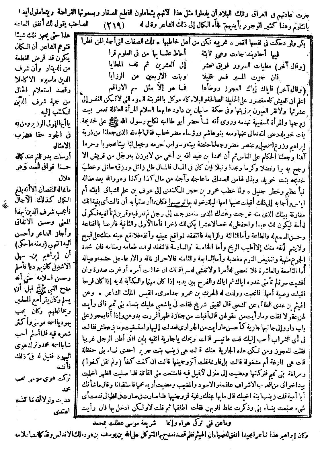 ومنه ما حكي أن إبراهيم بن سهل الأشبيلي كان يهودياً فأسلم وحسن إسلامه حتى أنه مدح النبي صلى الله عليه وسلم قبل أن يسلم وكان يقرأ مع المسلمين ويخالطهم وكان يحب يهودياً اسمه موسى وأكثر شعره فيه فلما أسلم أحب شاباً اسمه محمد وترك هوى اليهودي فقيل له في ذلك فأنشد: