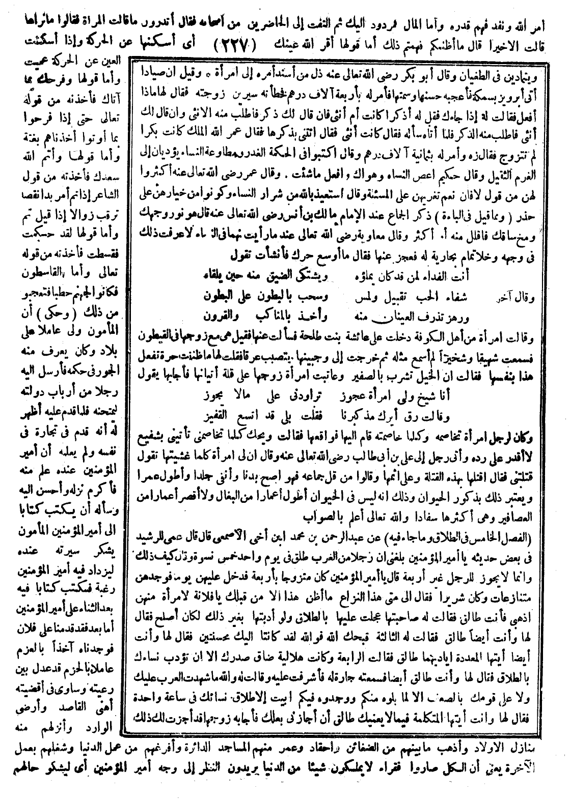 أمر الله ونفذ فيهم قدره وأما المال فمردود إليك ثم التفت إلى الحاضرين من أصحابه فقال أتدرون ما قالت المرأة فقالوا ما نراها قالت إلا خيراً قال ما أظنكم فهمتم ذلك أما قولها أقر الله عينك أي أسكنها عن الحركة وإذا أسكنت العين عن الحركة عميت وأما قولها وفرحك بما آتاك فأخذته من قوله تعالى حتى إذا فرحوا بما أوتوا أخذناهم بغتة وأما قولها وأتم الله سعدك فأخذته من قول الشاعر.