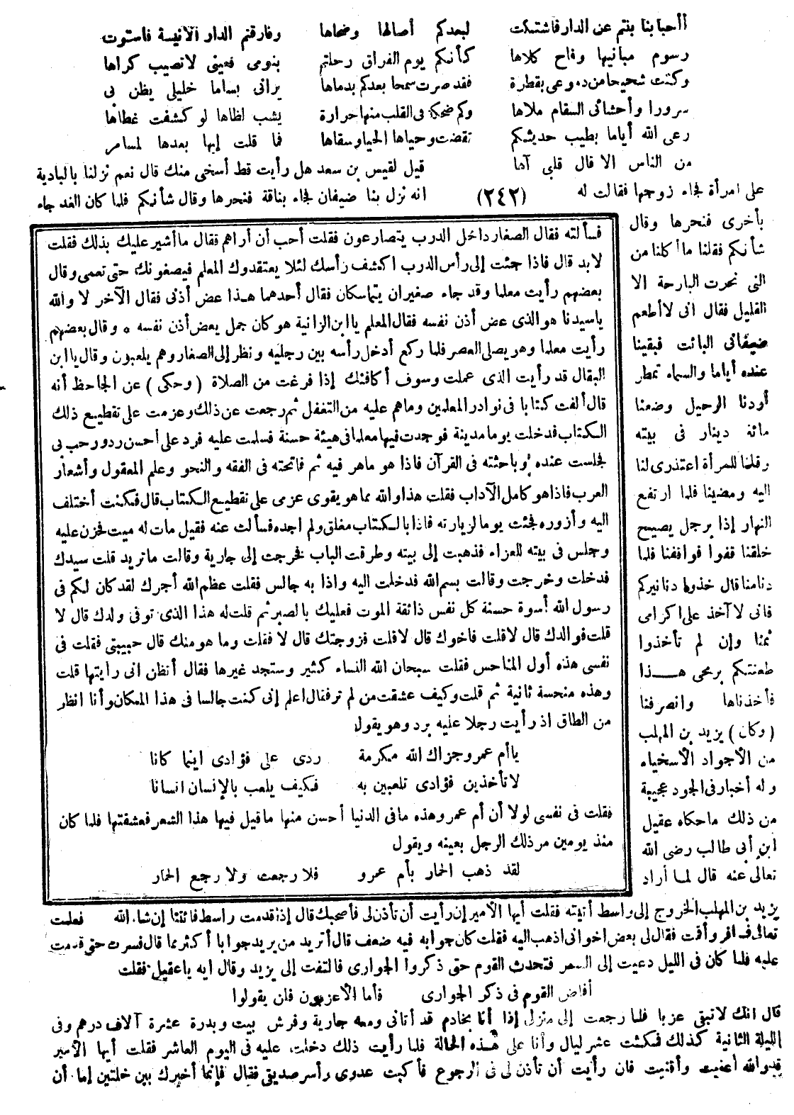 قال إنك لا تبقى عزبا فلما رجعت إلى منزلي إذا أنا بخادم قد أتاني ومعه جارية وفرش بيت وبدرة عشرة آلاف درهم وفي الليلة الثانية كذلك فمكثت عشر ليالي وأنا على هذه الحالة فلما رأيت ذلك دخلت عليه في اليوم العاشر فقلت أيها الأمير قد والله أغنيت وأقنيت فإن رأيت أن تأذن لي في الرجوع فأكتب عدوي وأسِرُّ صديقي فقال إنما أخيِّرك بين خلَّتين إما أن
